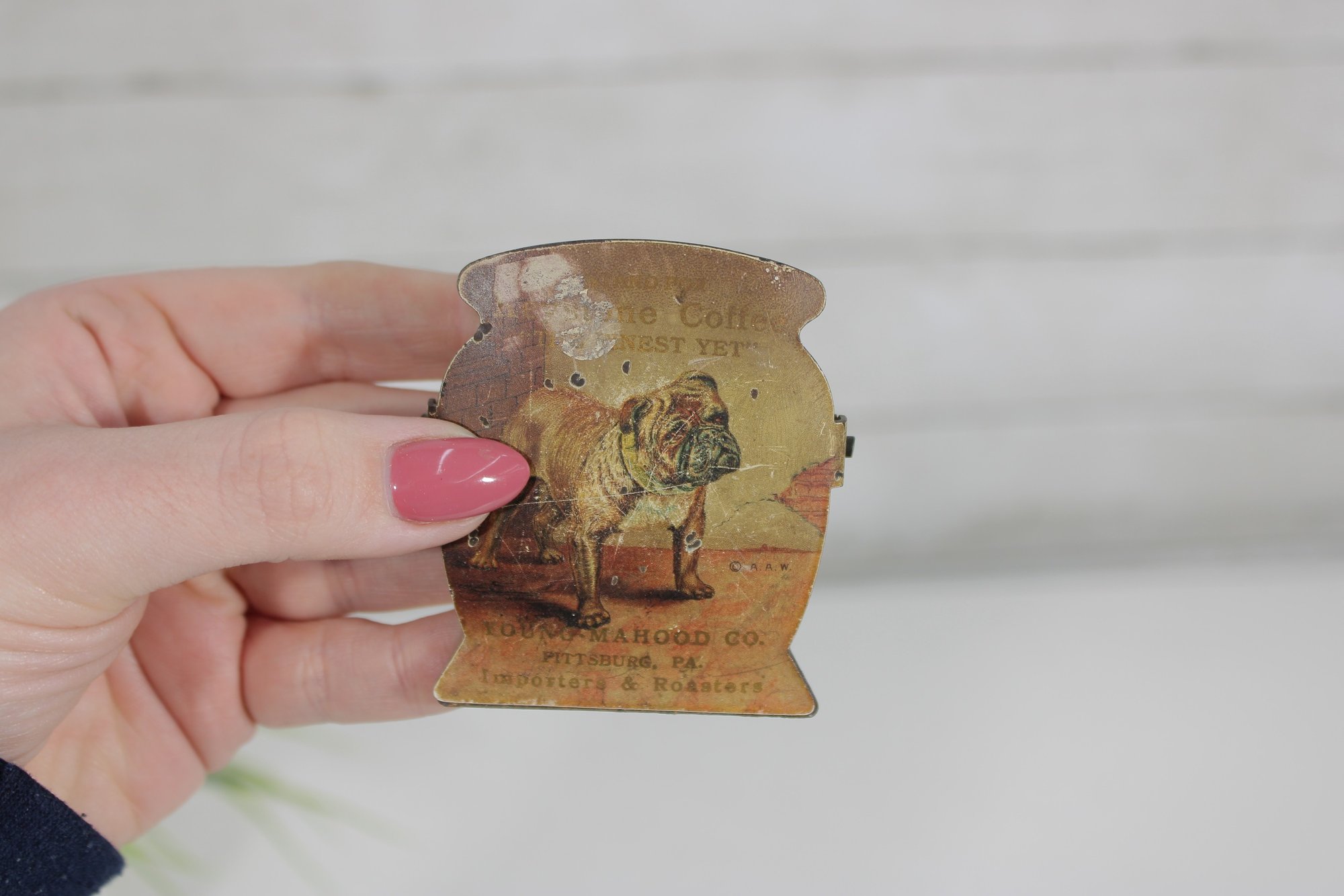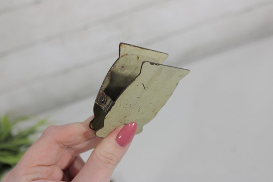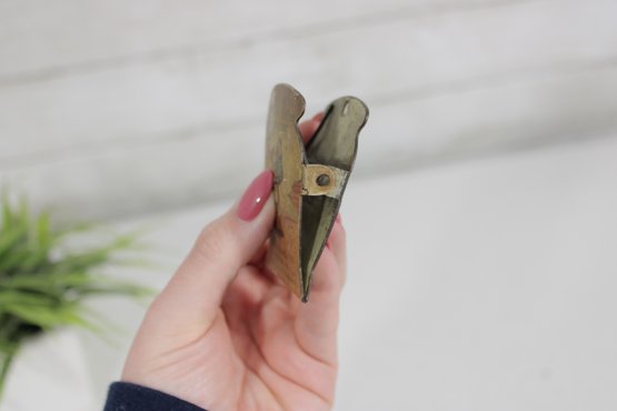 Constructed of metal with printed graphics, the clips show a nicely aged patina that reflects their age and adds to their vintage character. Their unusual design makes them appealing for collectors of vintage advertising items, desk accessories, or camel-themed memorabilia.