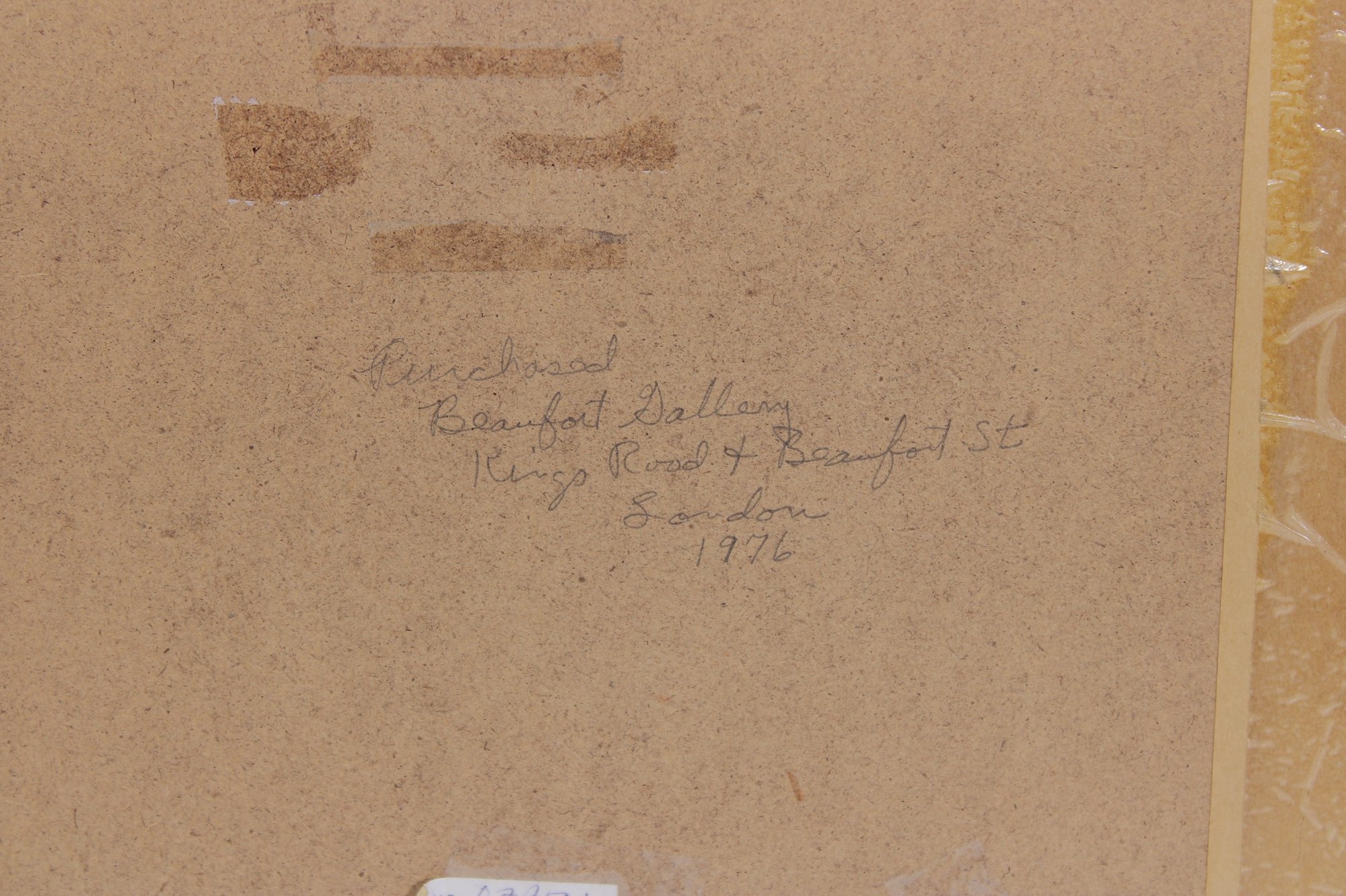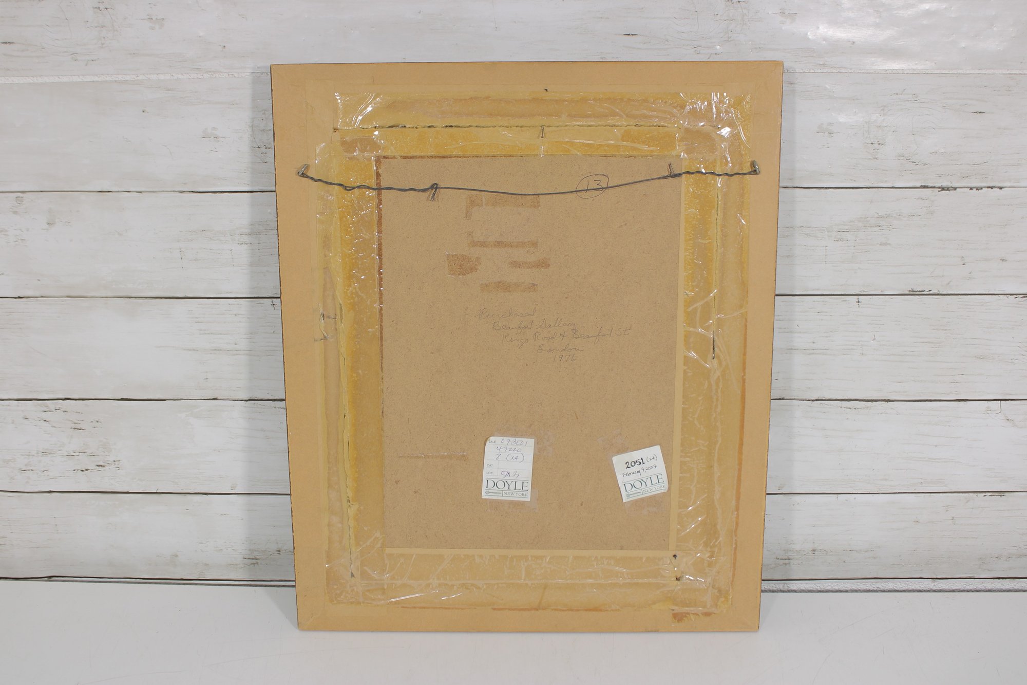 A handwritten note on the reverse references Doyle’s English Print and includes a date notation, adding to the piece’s vintage character.