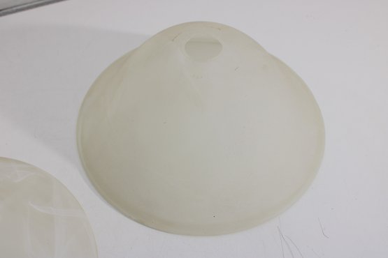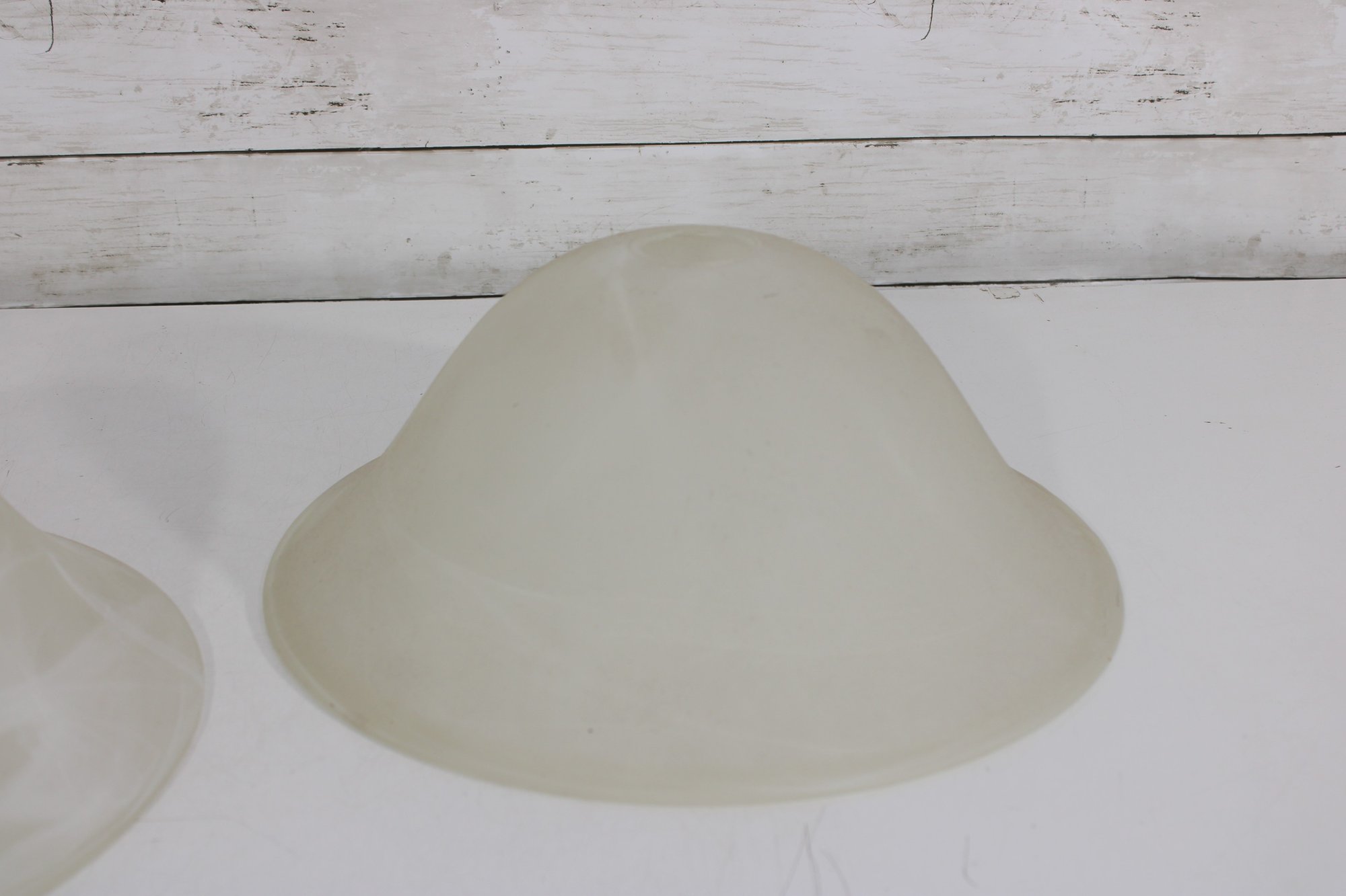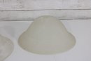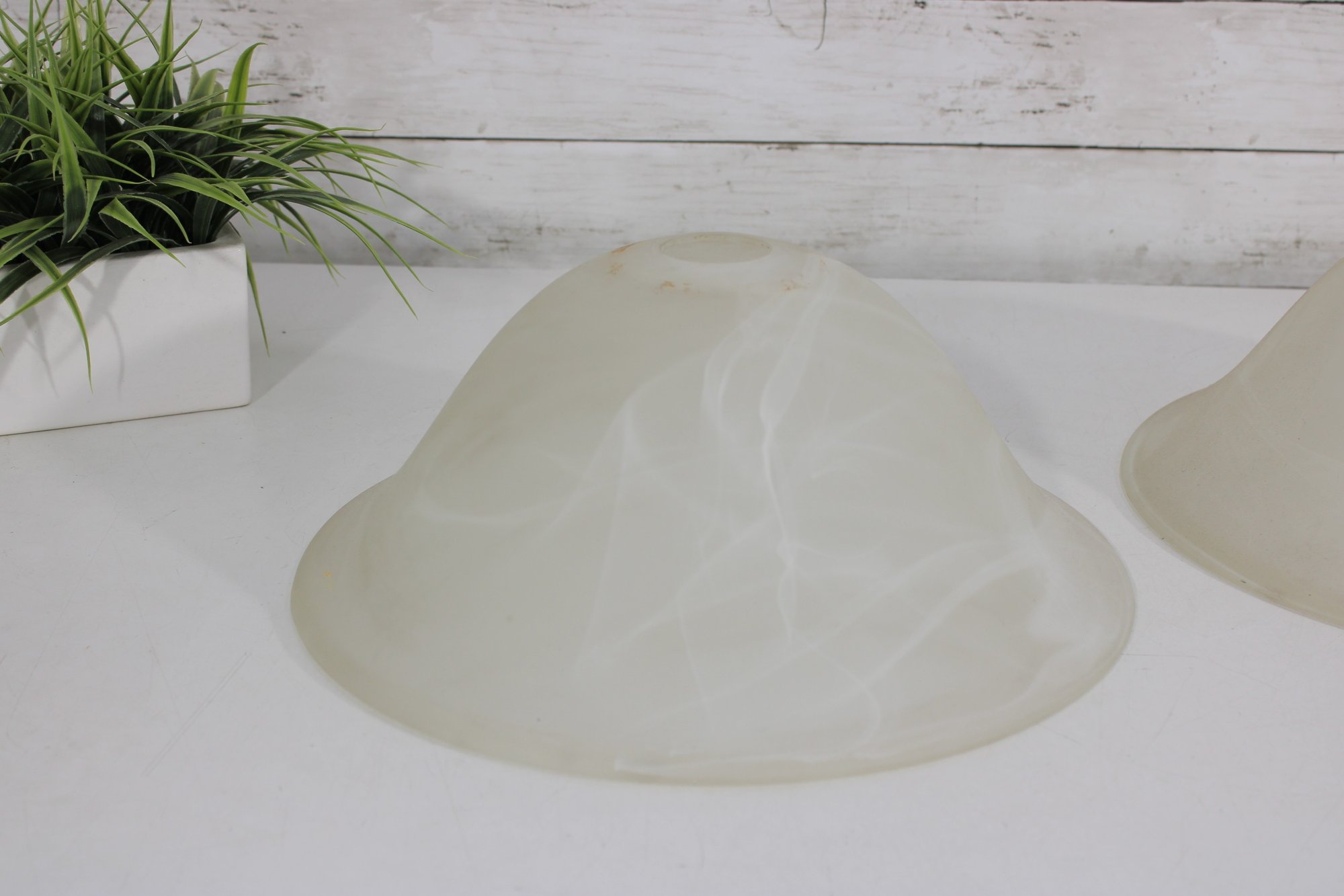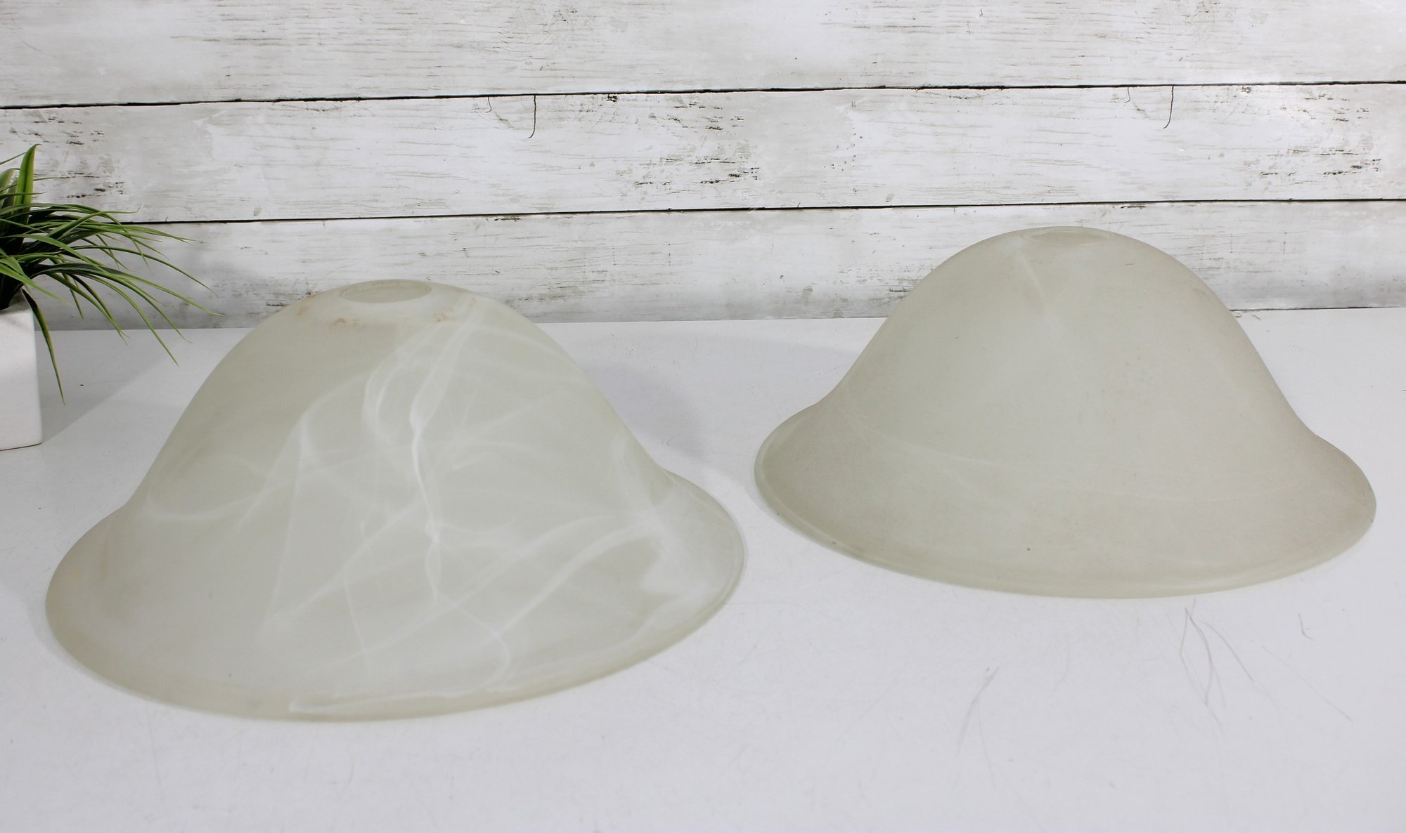 Set of two frosted glass dome lamp shades featuring a soft white finish with subtle swirl patterning that creates a warm, diffused glow when illuminated. These versatile replacement shades have a classic rounded profile that complements both vintage and contemporary lighting fixtures.