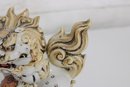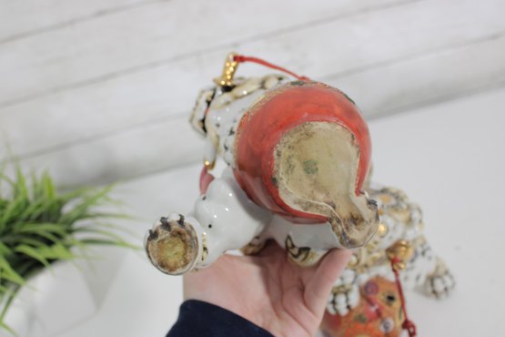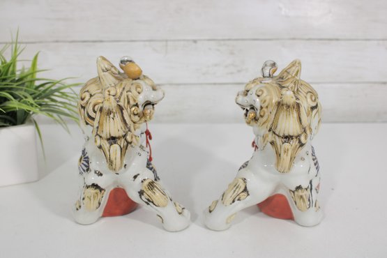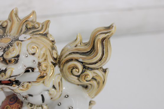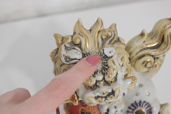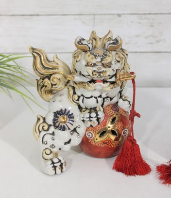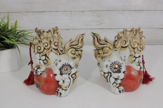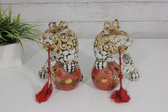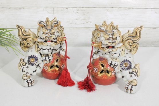 Striking set of two Kutani-style Foo Dogs (Chi Chi / Guardian Lions), beautifully hand-painted with vibrant colors and rich gilt accents. These traditional figures symbolize protection, strength, and good fortune, making them popular decorative and cultural pieces.
