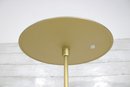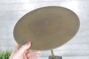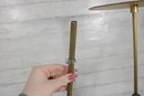 One table includes its round brass top (approximately 12” diameter), while the second table is missing its top—offering a great opportunity for restoration, customization, or repurposing.