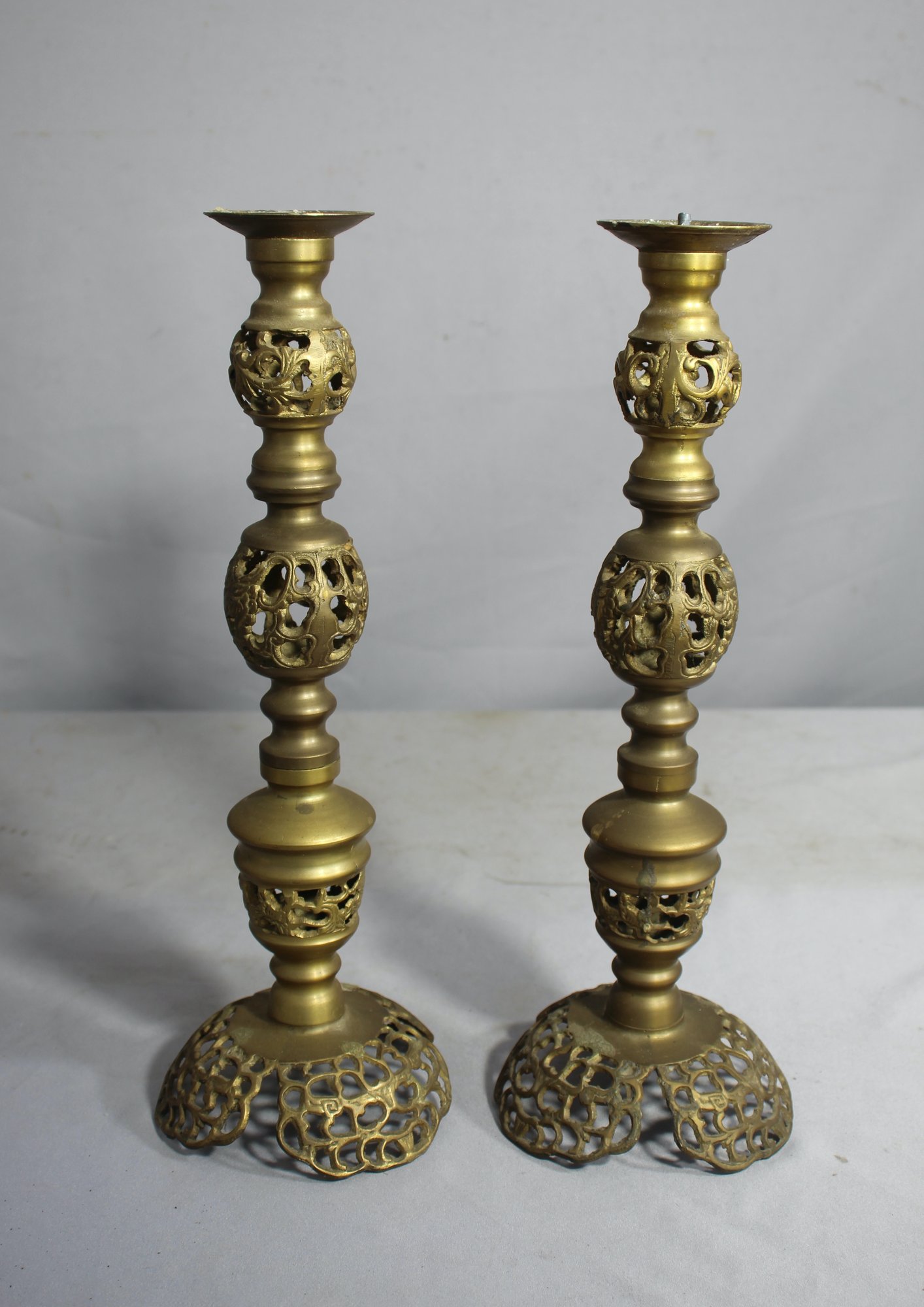 Pair Of 14" Vintage Brass Candle Holders