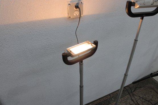 Designed for directional lighting, these lamps provide bright, focused illumination—ideal for task lighting, studio use, workshops, or as unique industrial-style décor. Both units have been tested and power on, as shown.