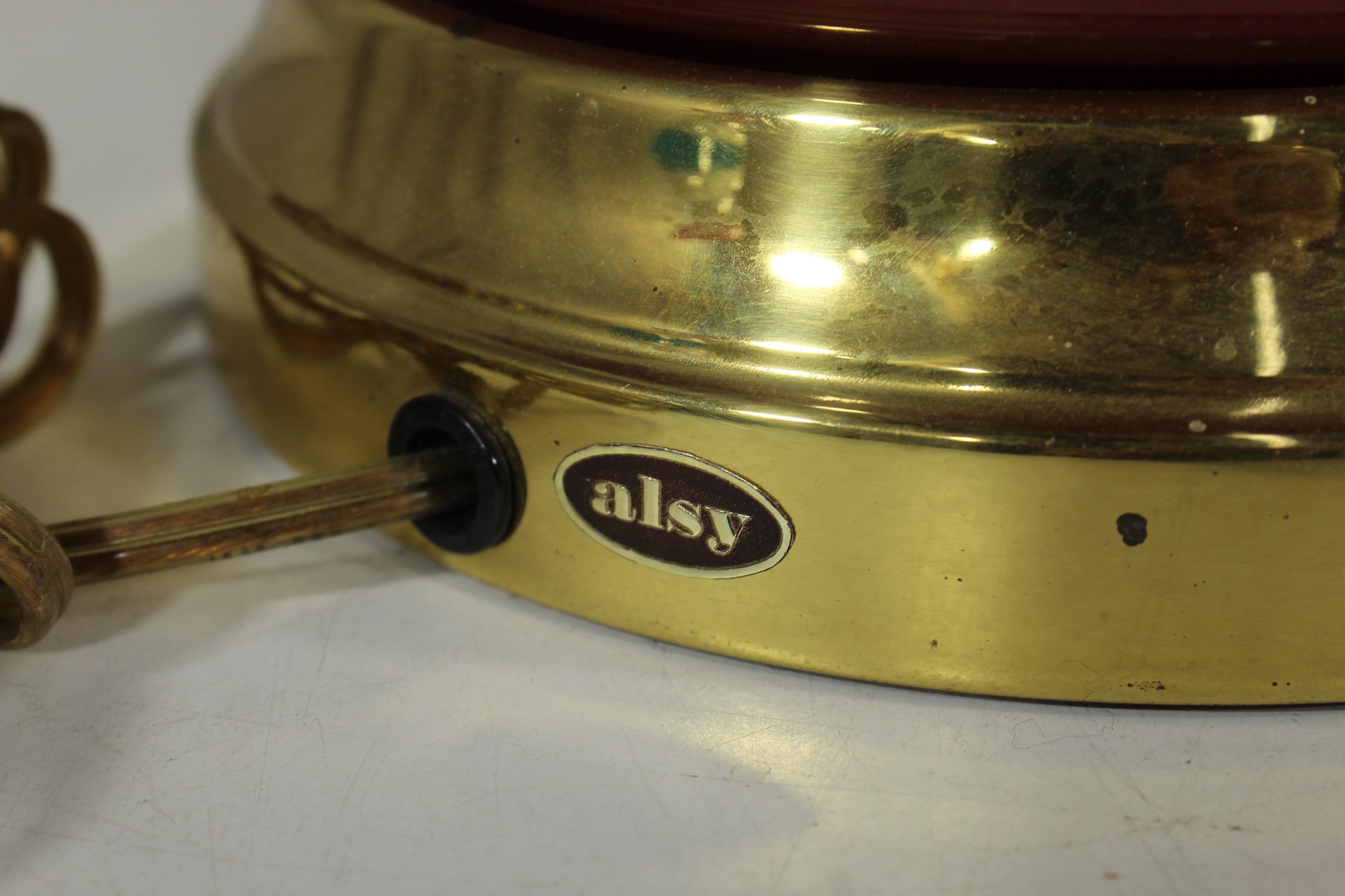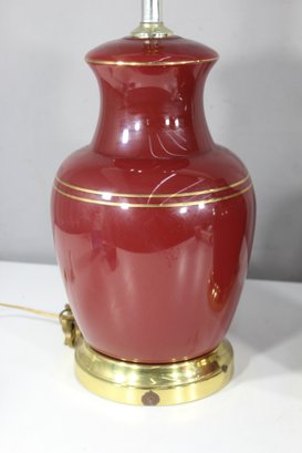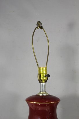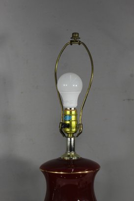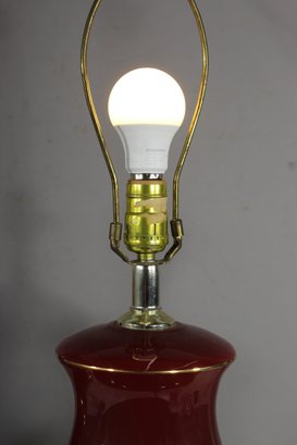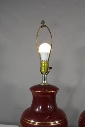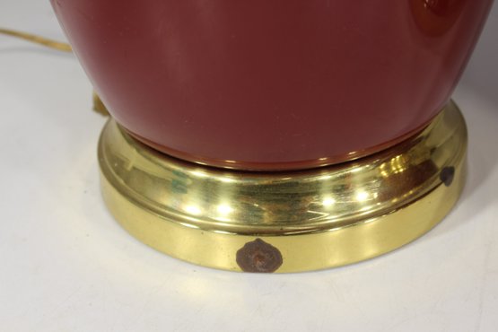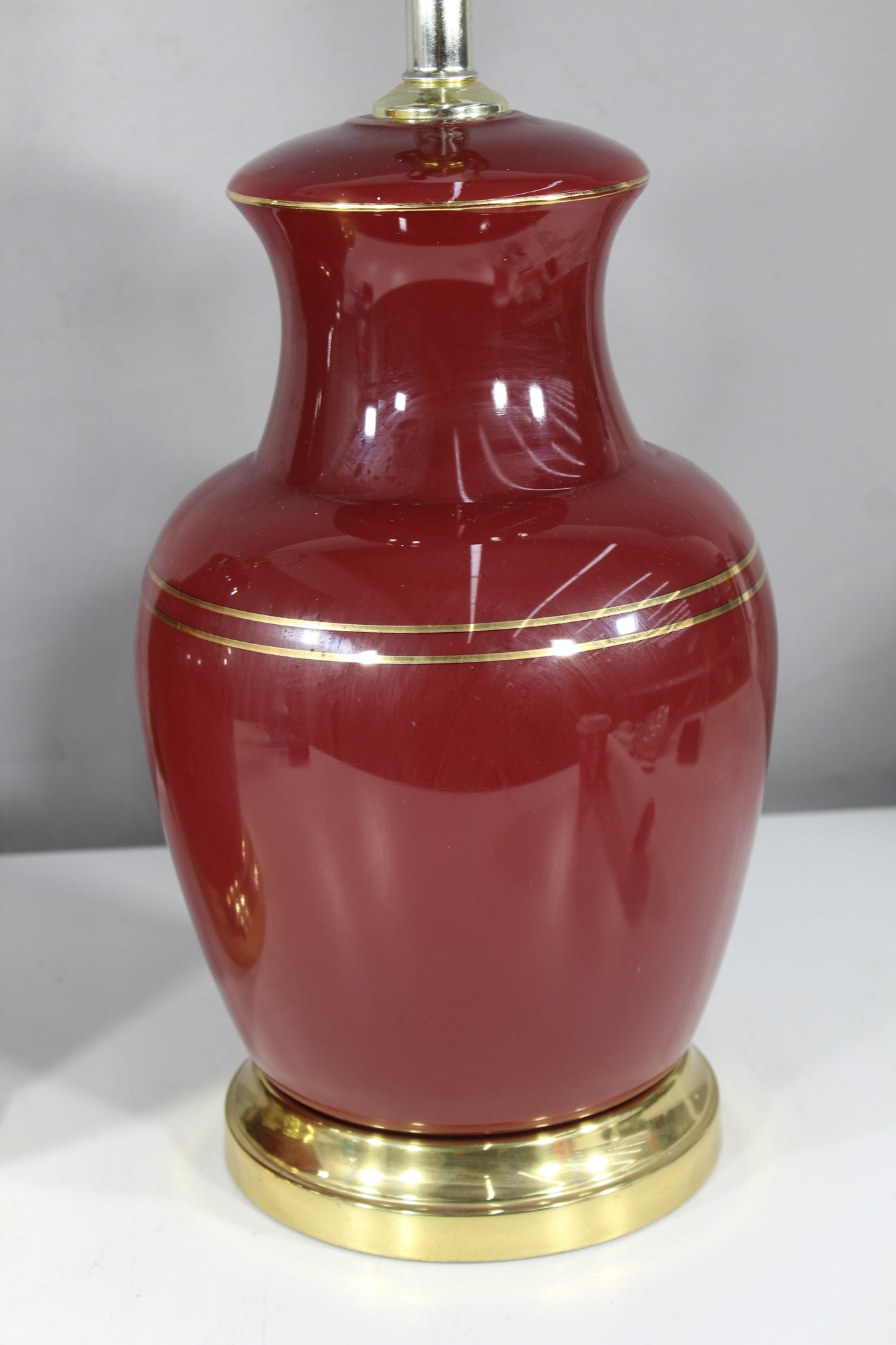 pair of Alsy ceramic table lamps combines classic design with modern functionality. Featuring a rich burgundy gloss finish with subtle gold band accents, these lamps exude sophistication. The brass bases add a touch of warmth and luxury, making them perfect for traditional or contemporary decor styles.