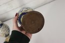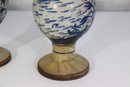 The pair is similar in form but slightly different in height, measuring approximately 10.5 inches and 9.5 inches tall, making them ideal for display together on a mantel, shelf, or cabinet.