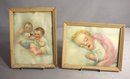 Pair Of Antique LH Barnes Babies Framed Lithos- 9" X 7"