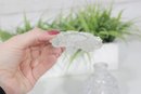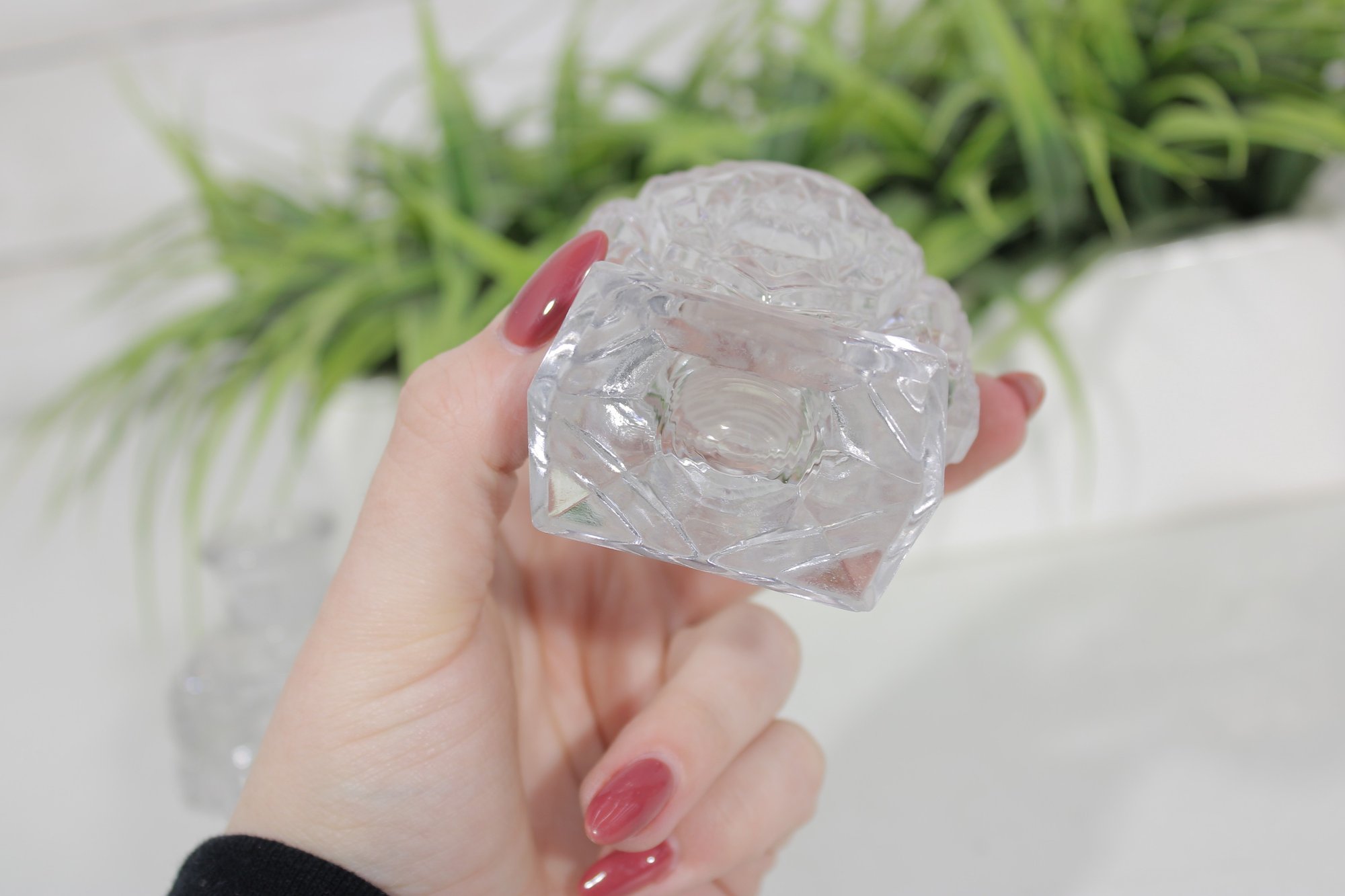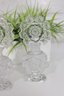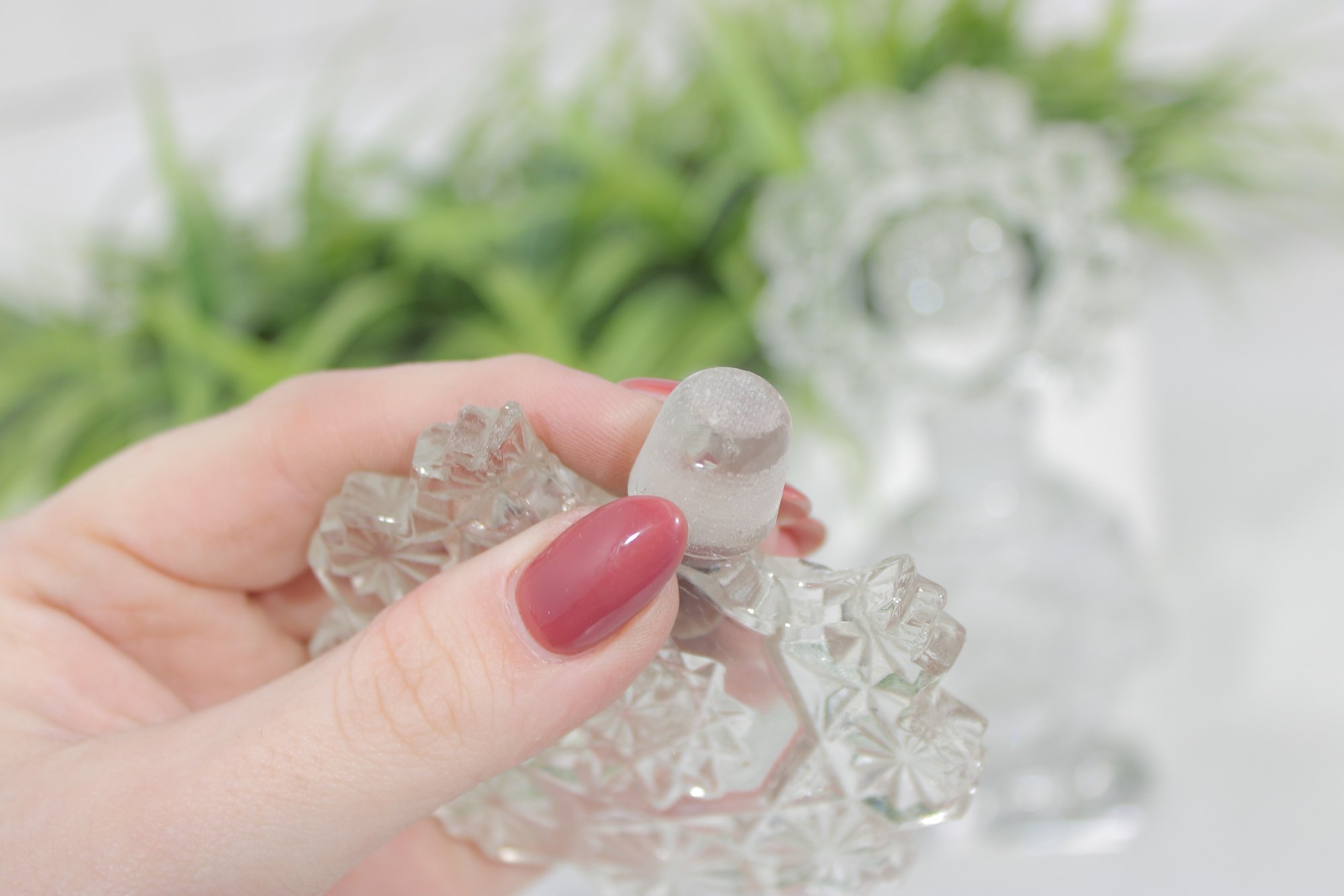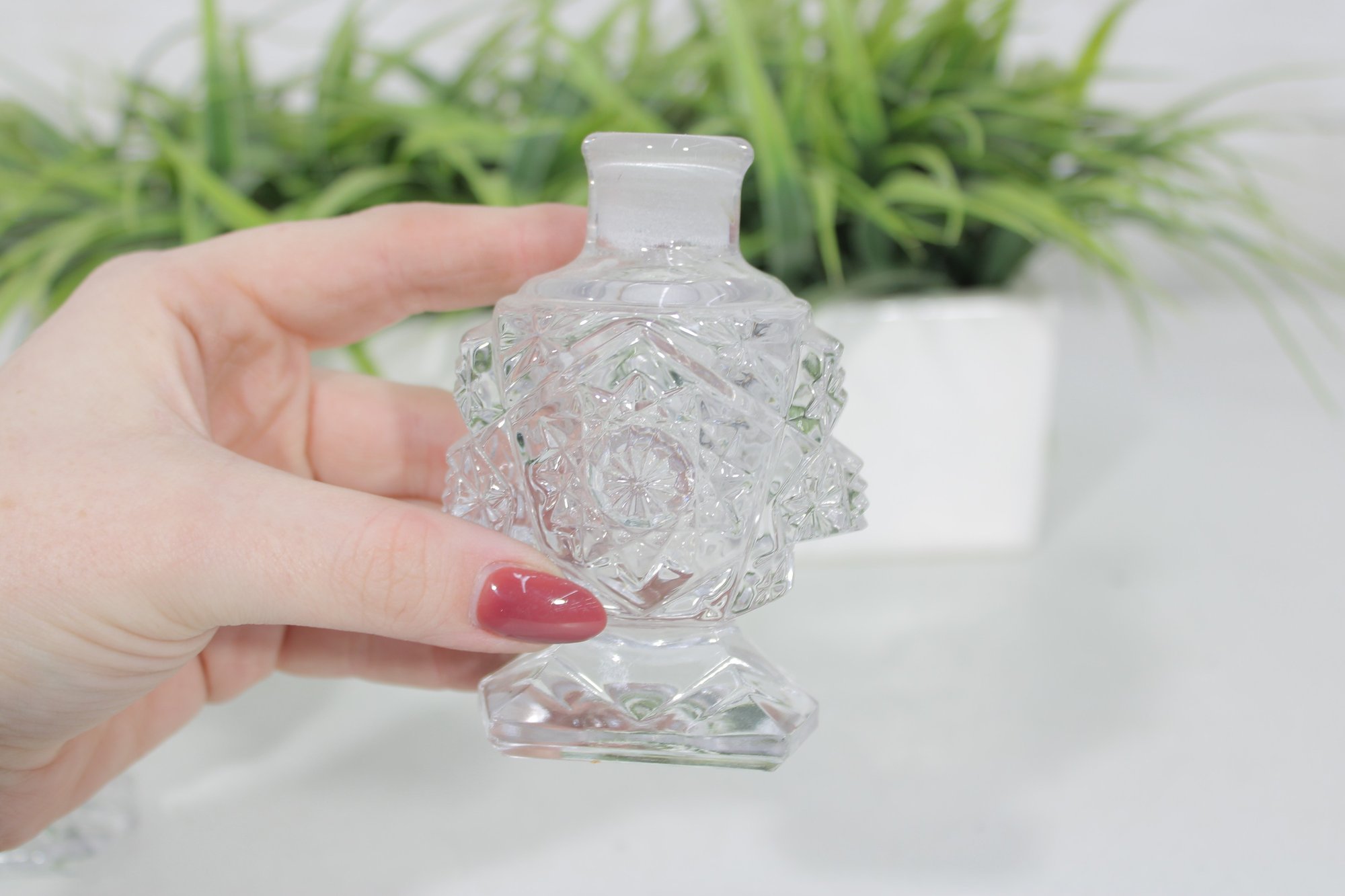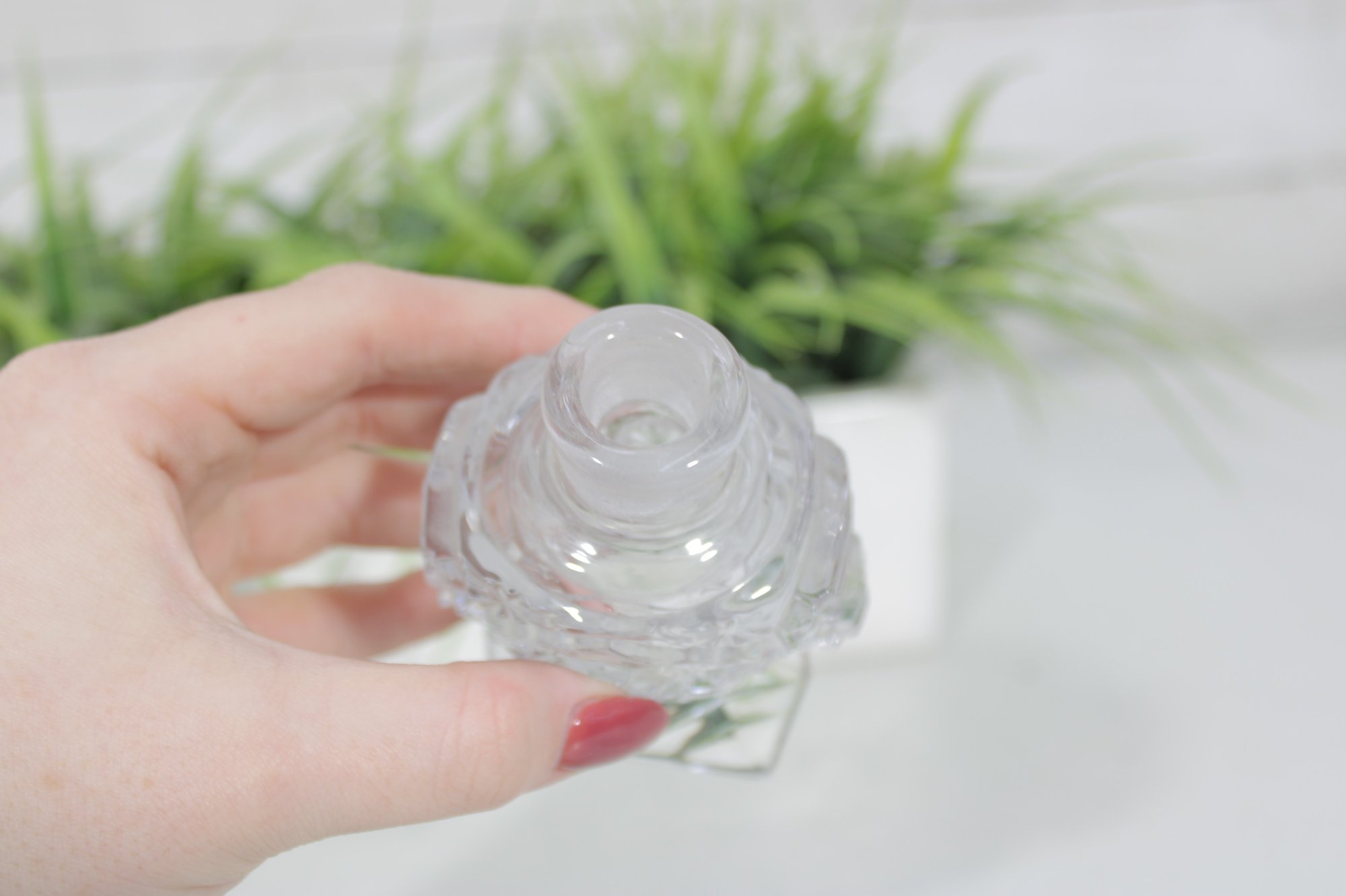 pair of vintage cut crystal perfume bottles, each measuring approximately 6.5 inches tall (including stoppers).