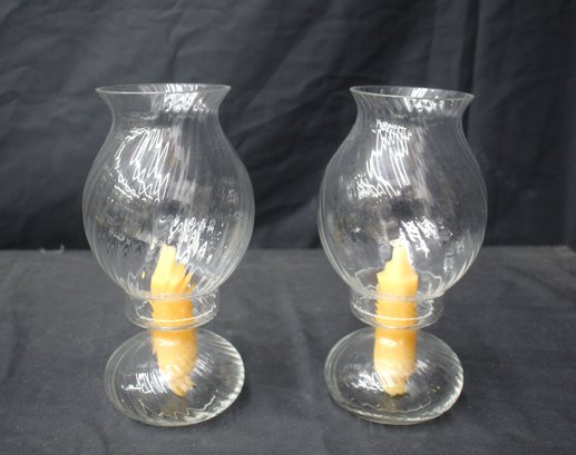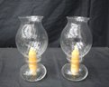 Each candle holder is balanced upon a sturdy, clear glass pedestal base, ensuring stability and adding to the overall height and presence of the pieces.