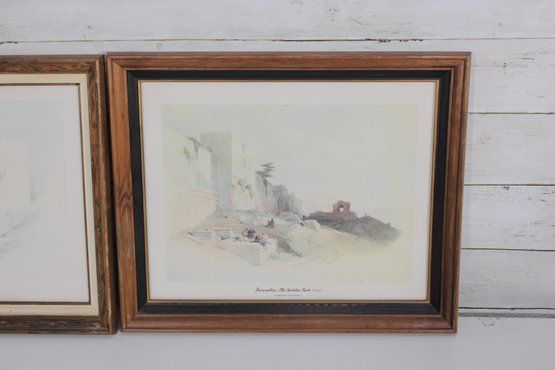Add classic, old-world charm to your space with this pair of framed architectural art prints, each measuring 16” x 13.5” (including frames). These elegant pieces feature soft, watercolor-style scenes depicting historic European architecture and street life.