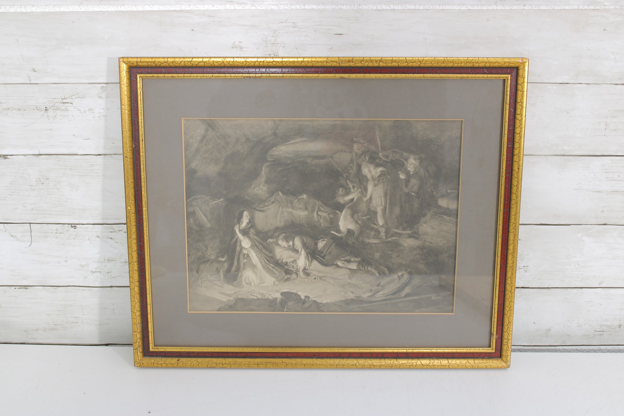 Add timeless elegance and dramatic storytelling to your walls with this pair of framed classical-style prints, beautifully rendered in soft monochrome tones. These pieces evoke the look of old master drawings, with flowing drapery, expressive figures, and rich atmospheric detail.