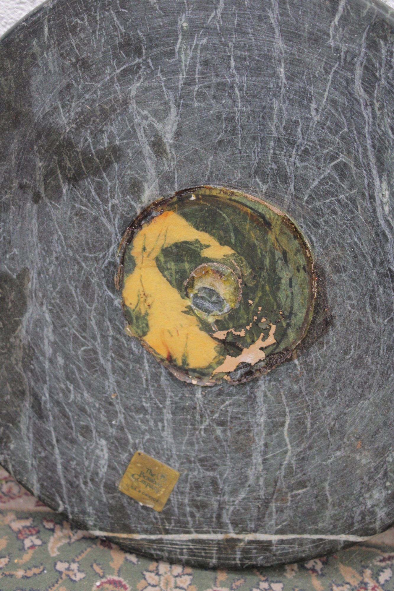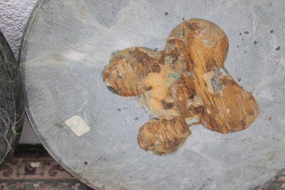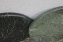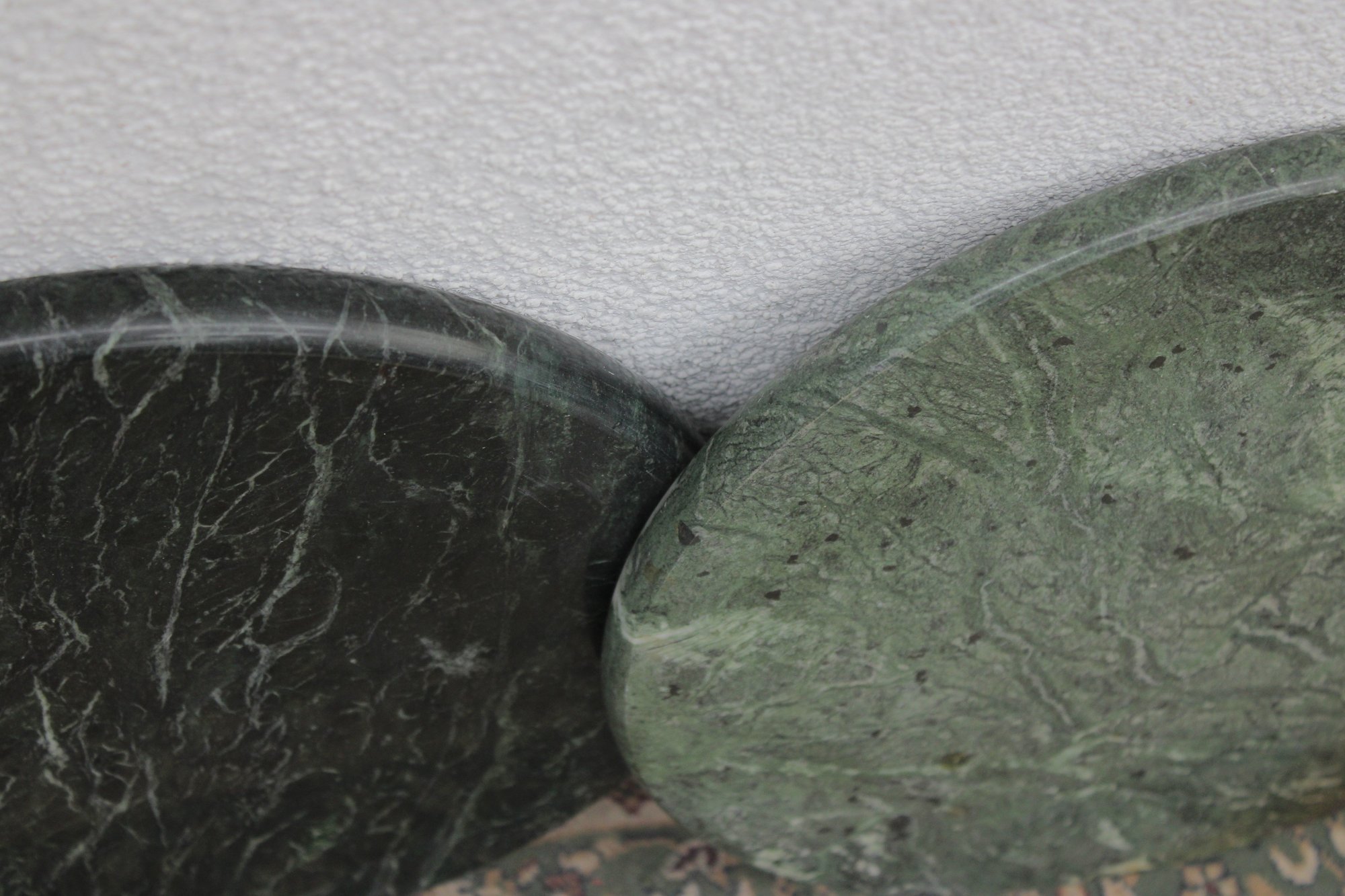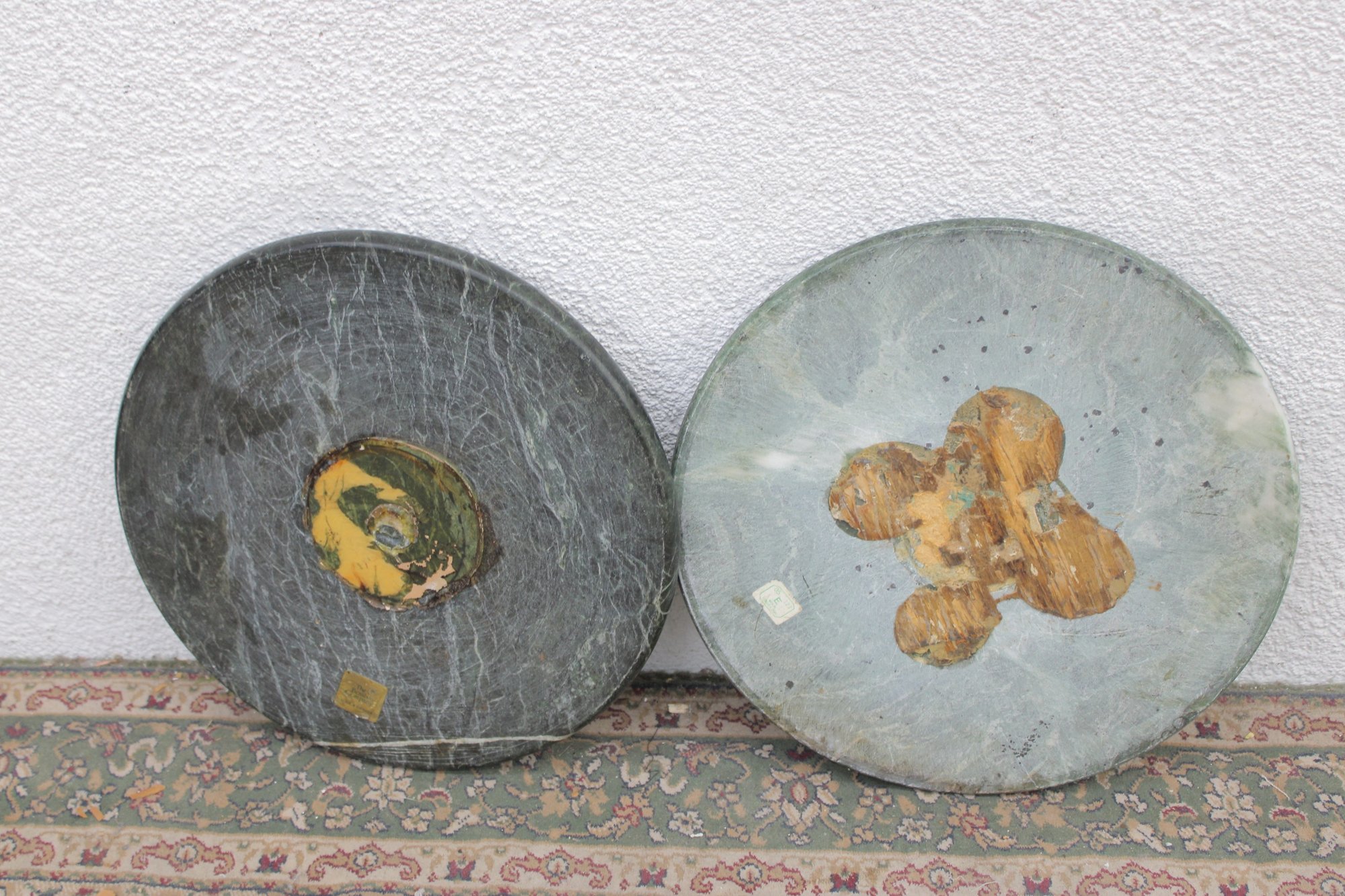 Set of two round green marble pieces featuring natural veining in two complementary shades, one darker and one lighter. These solid stone rounds are versatile and can be used as small table tops, plant stands, display bases, risers, or decorative marble slabs for home décor.