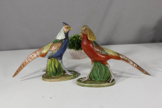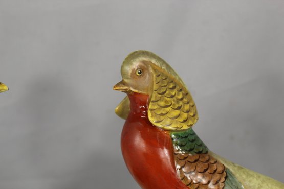 Each pheasant is individually sculpted and painted in vivid hues of red, blue, green, and gold, bringing these majestic birds to life.
