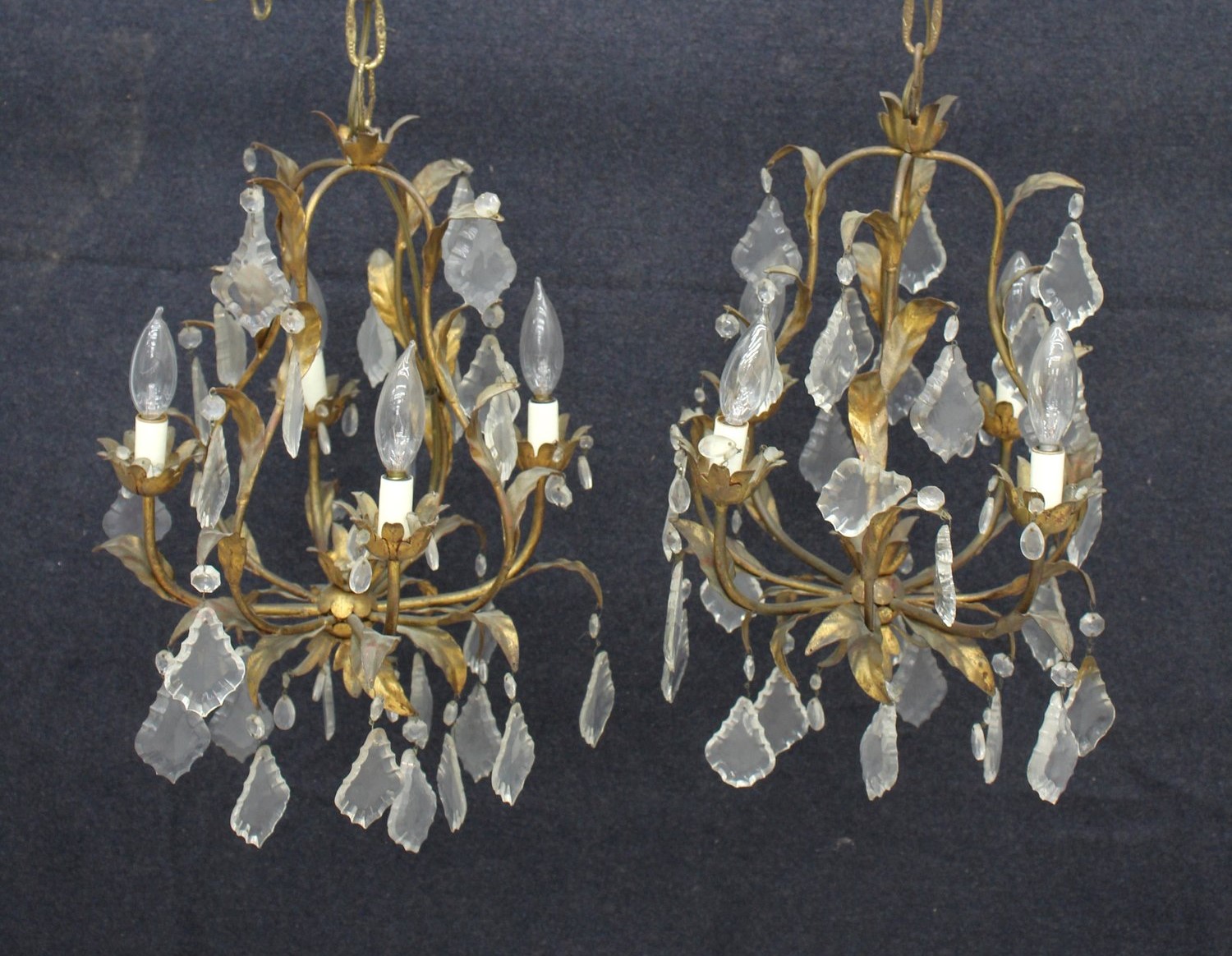 Pair Of Italian 4-Light Chandeliers With Crystal Drops