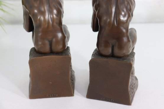 Both bookends stand approximately 8 inches high and are marked on the back near the base, as shown in the photos. These display beautifully and add a classic, scholarly presence to any bookshelf or office décor.