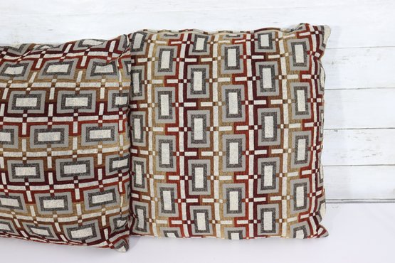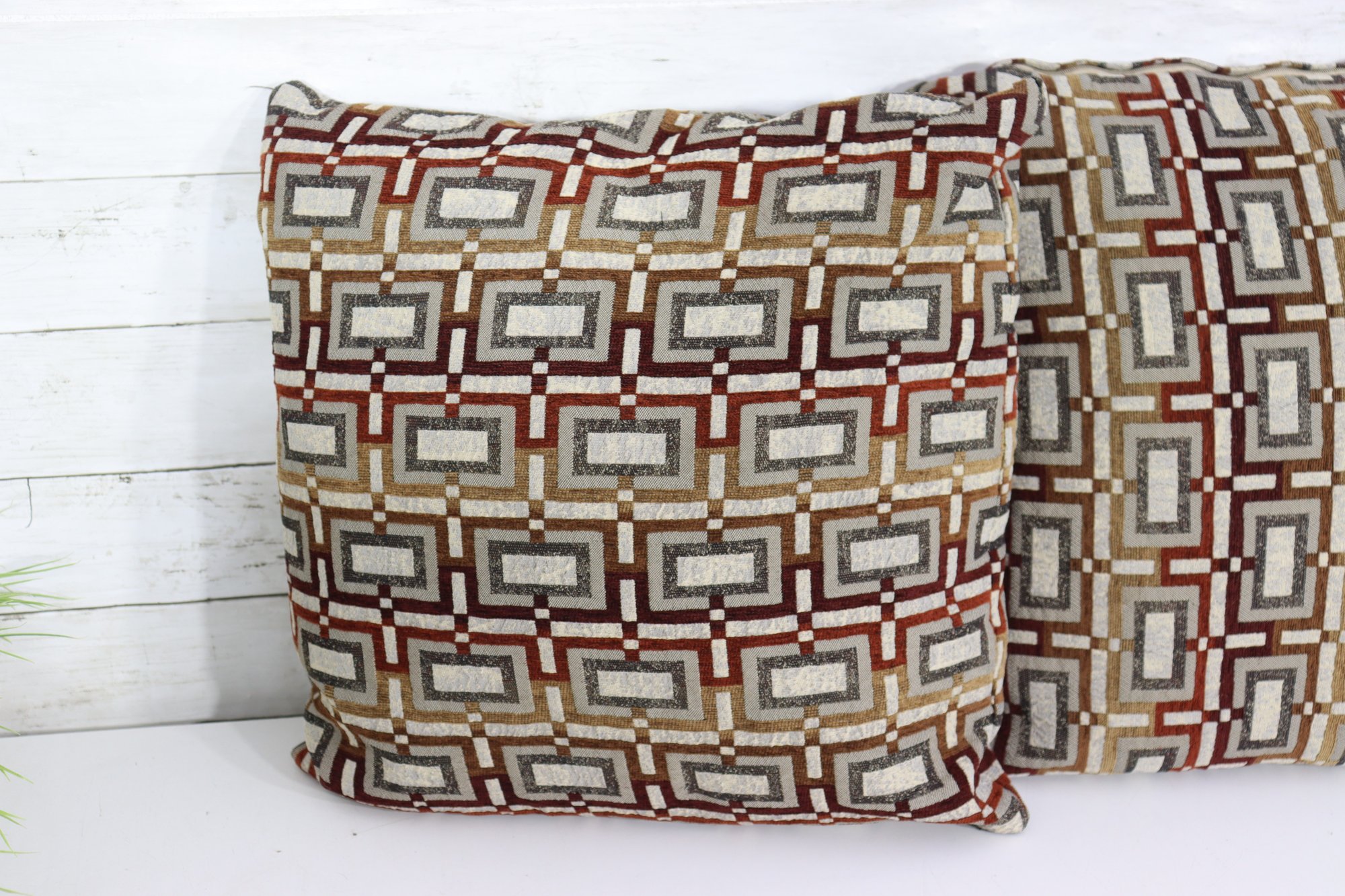 Pair Of Mid Century Style Geometric Pattern Throw Pillows 17 X 17