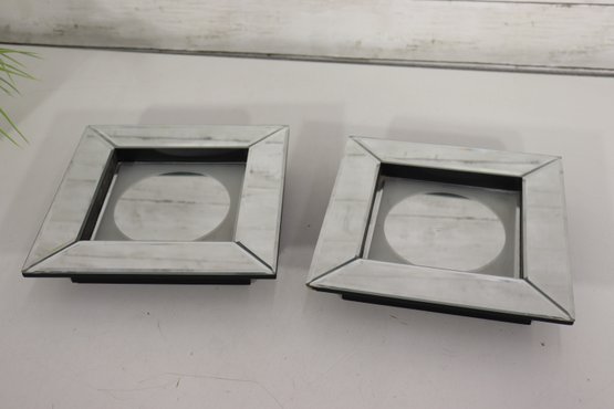 Pair Of Modern Small Square Wall Mirrors 8" X 8"