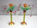 Bring bold artistic flair to your space with this pair of sculptural candlesticks by Israeli designer Orna Lalo, known for her whimsical and colorful designs. These playful candle holders stand 14 inches tall and feature an explosion of translucent resin petals, vibrant cherry-like bead accents, and a modern combination of chartreuse, orange, and teal tones.