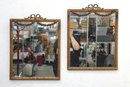 A stunning pair of vintage mirrors with elegant brass frames. The mirrors are adorned with detailed floral garlands and ribbon motifs at the top, adding a touch of sophistication and charm. The intricate brasswork gives these mirrors a timeless appeal, making them a perfect accent for any traditional or modern decor. The frames exhibit minor wear consistent with age, enhancing their character and appeal. These mirrors are not only functional but also serve as beautiful decorative pieces. Perfect for adding light and elegance to any room.