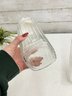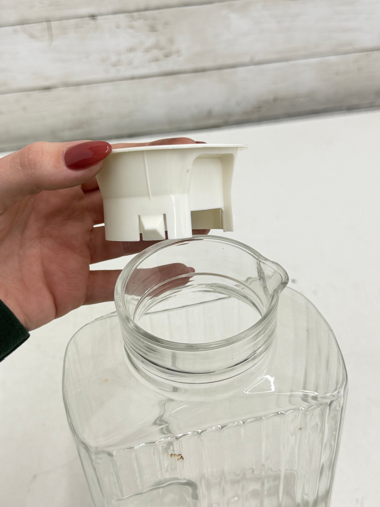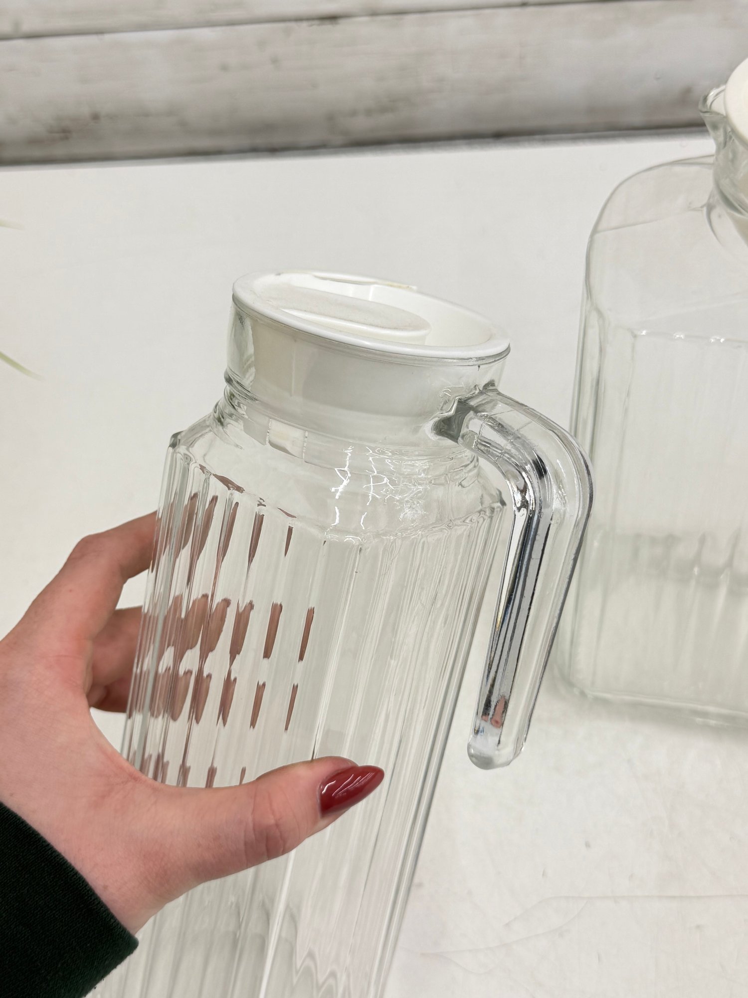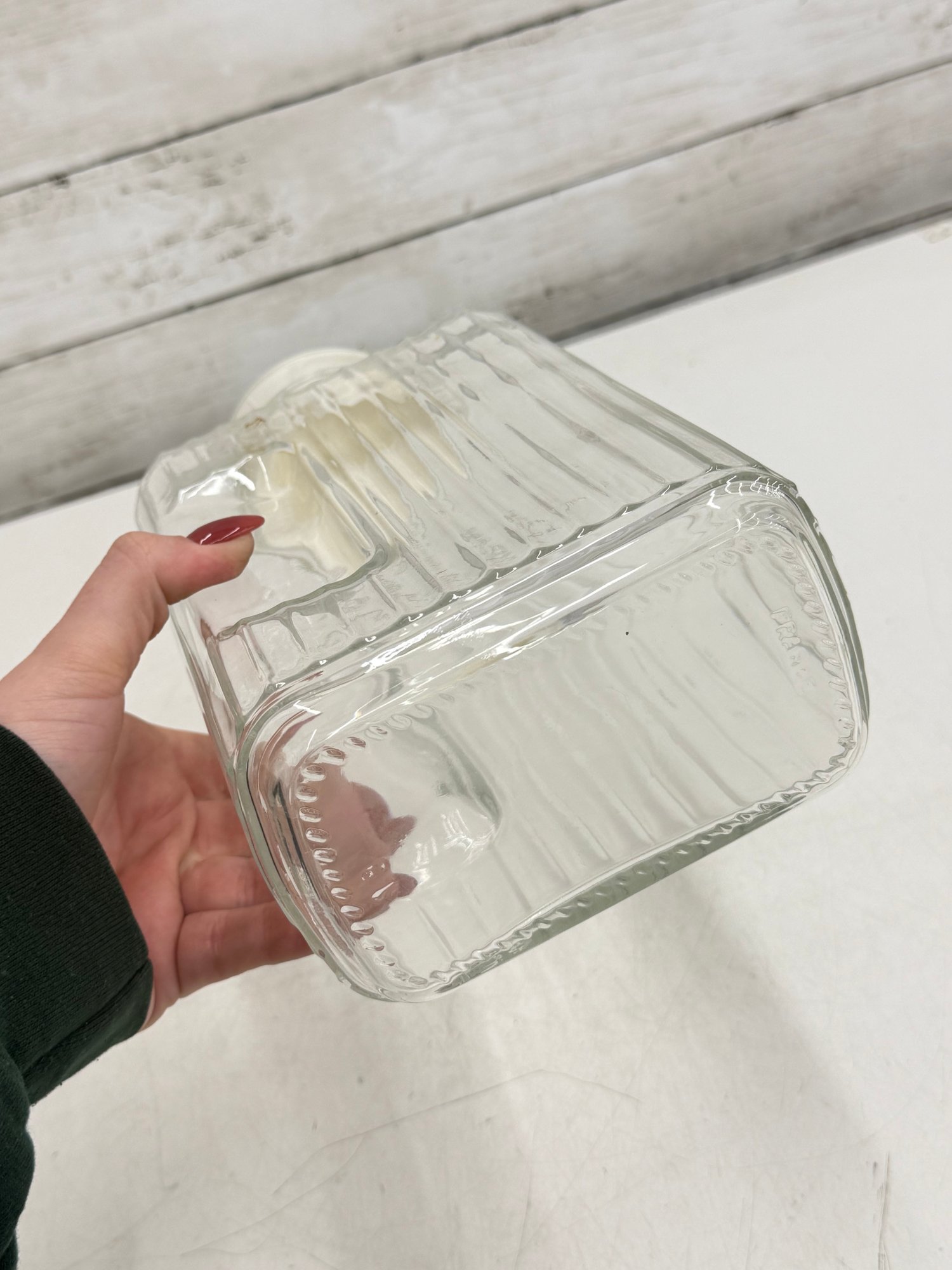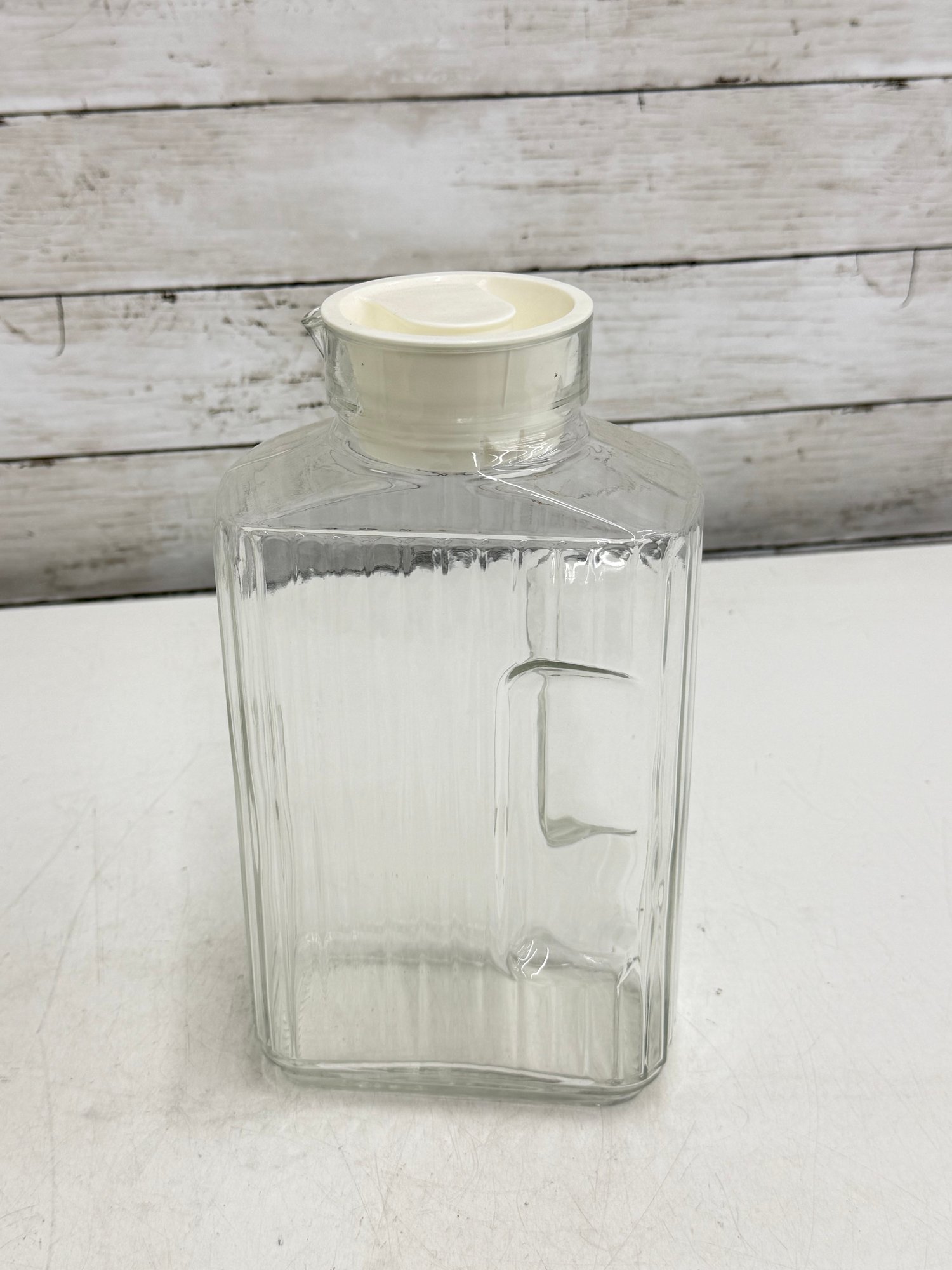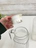 Pair Of Ribbed Glass Beverage Pitchers W/ Lids Vintage Modern 10" H