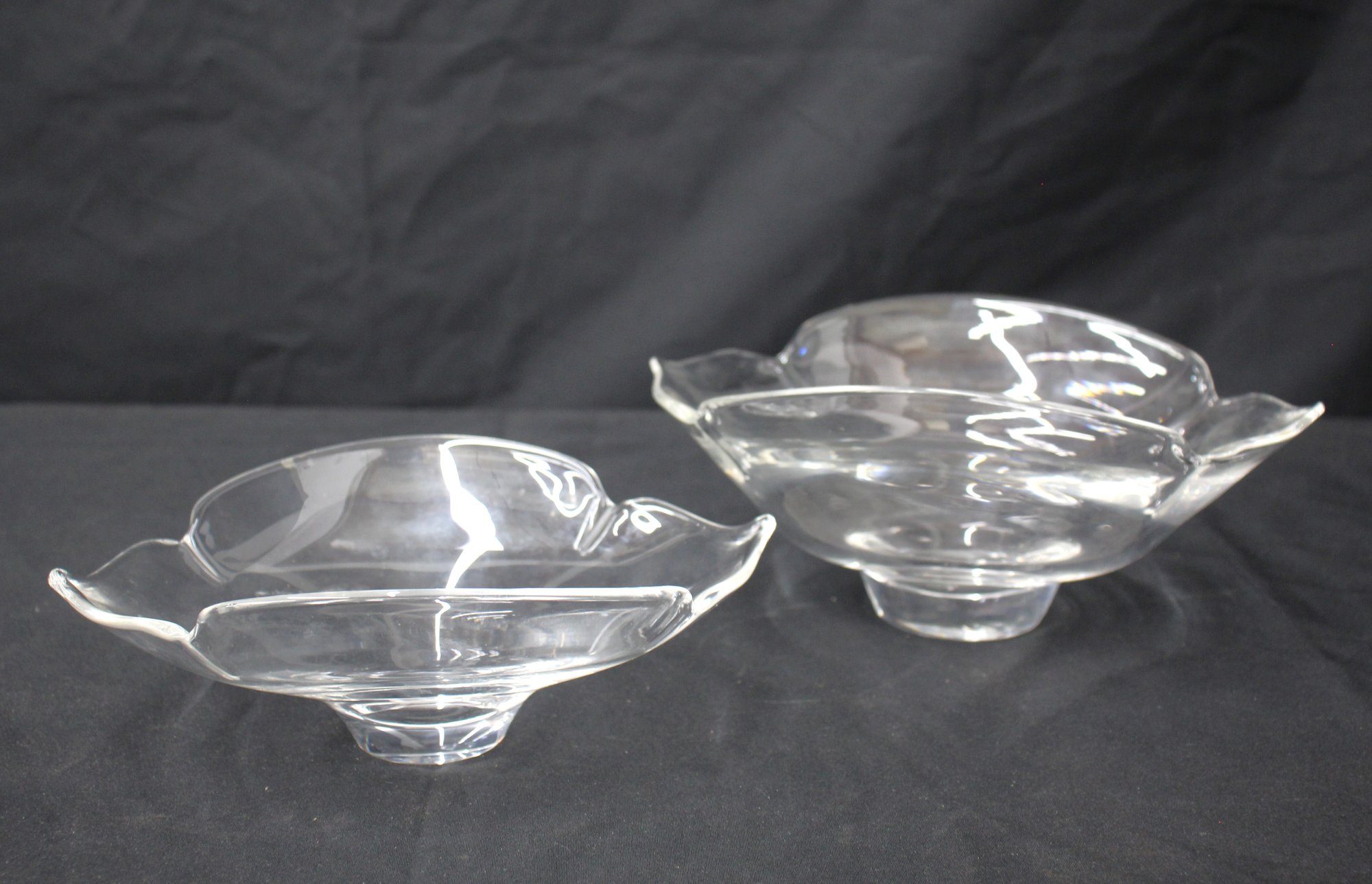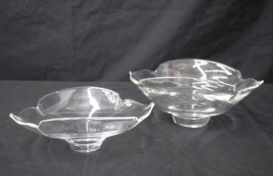 pair of Steuben Crystal Art Glass Calyx Leaf Flower Petal-Shaped Bowls. Renowned for their elegance and craftsmanship, these bowls embody the timeless beauty and sophistication of Steuben glasswork.