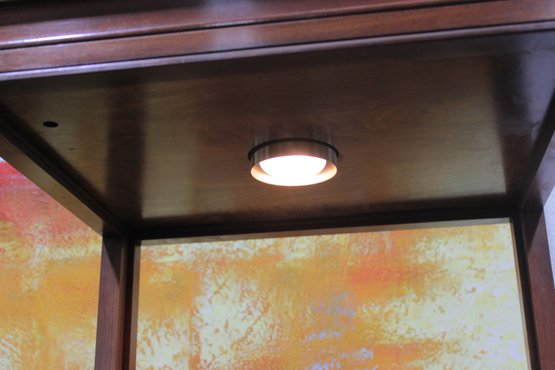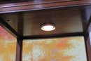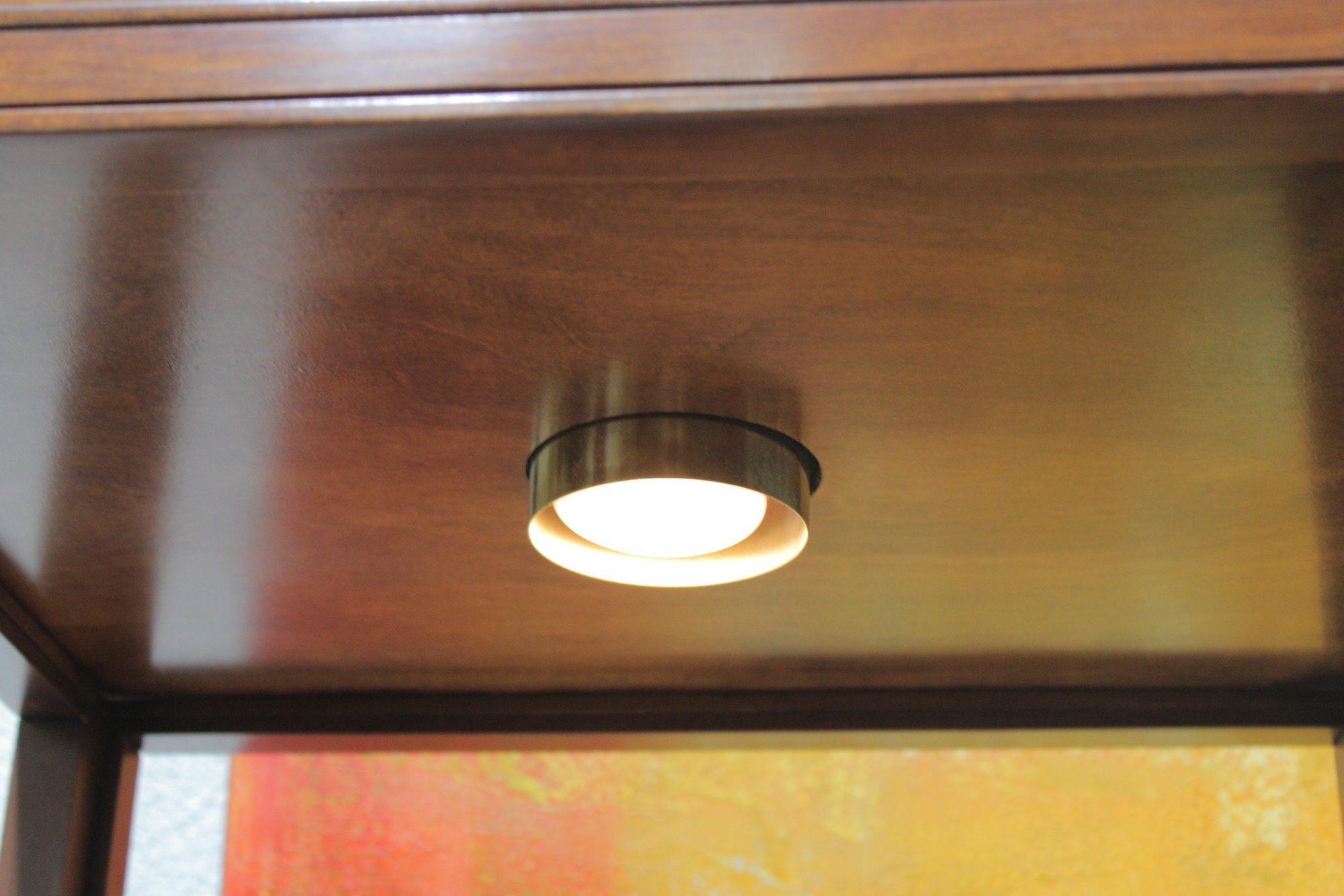 Both cabinets are equipped with built-in interior lighting at the top, helping illuminate displayed items and create an attractive presentation. Their tall, narrow profile makes them ideal for use in living rooms, offices, galleries, or retail display settings where vertical display space is desired.