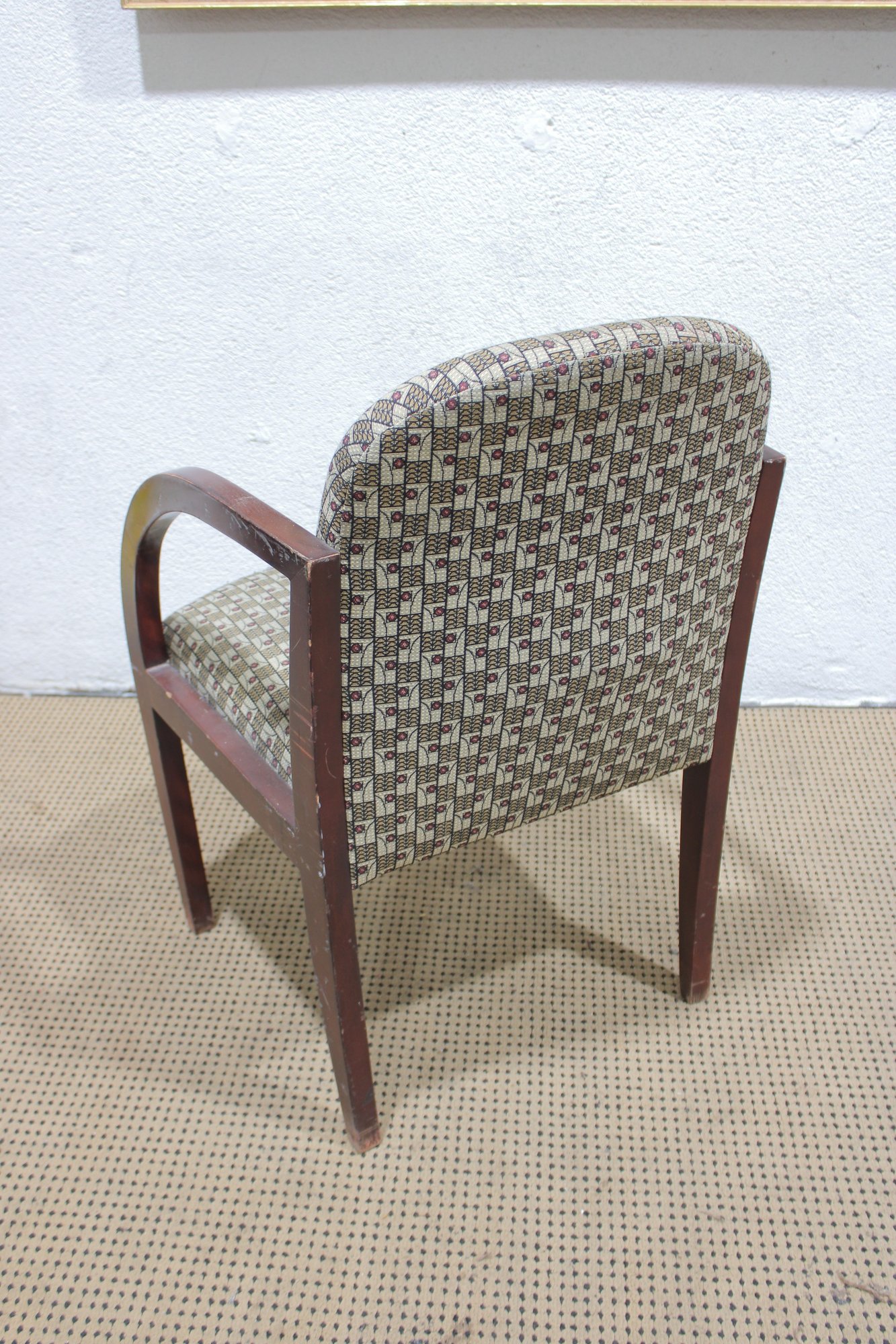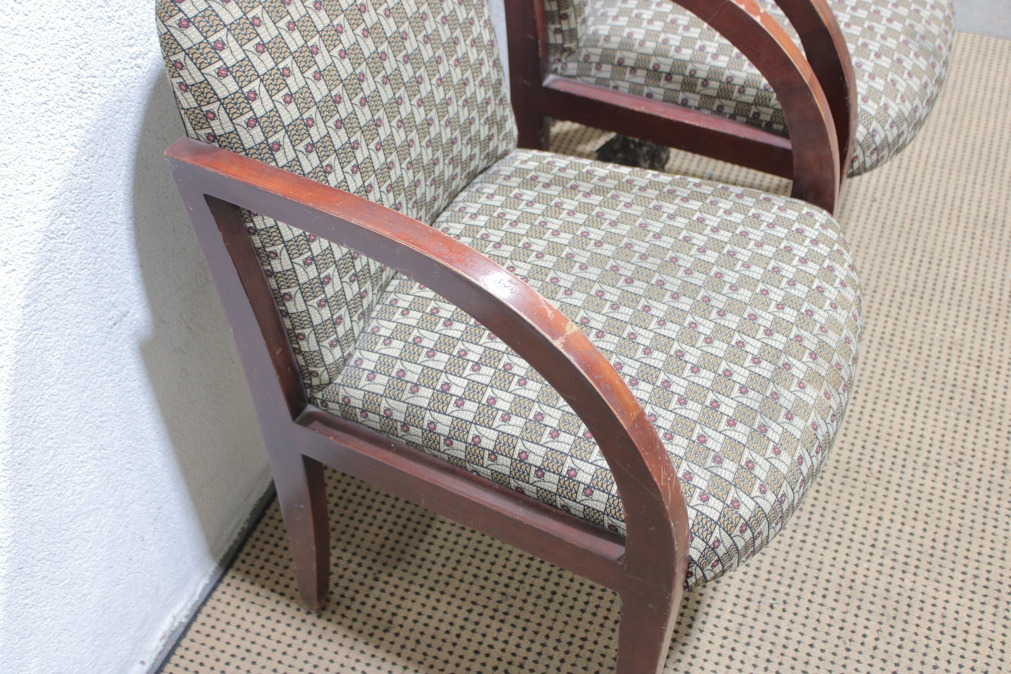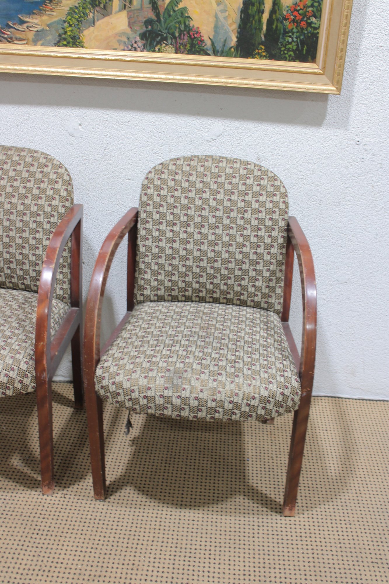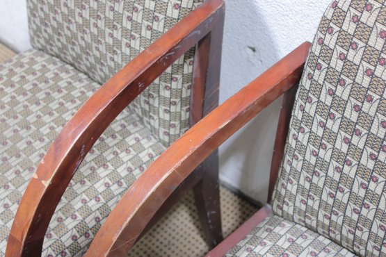 Comfortable and versatile pair of upholstered armchairs featuring gently curved wood arms and supportive padded backs. These chairs are ideal for office settings, reception areas, waiting rooms, or home use.