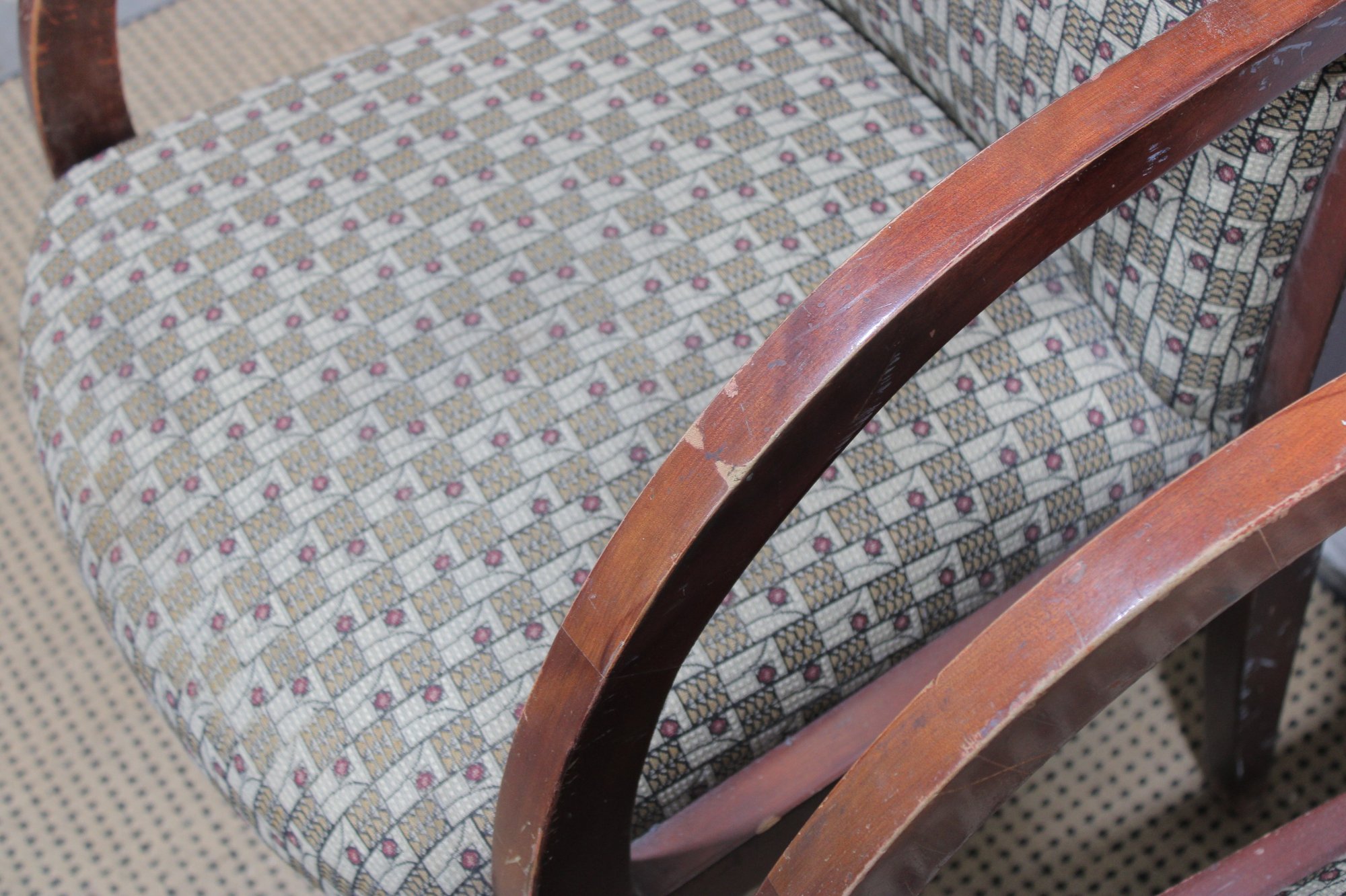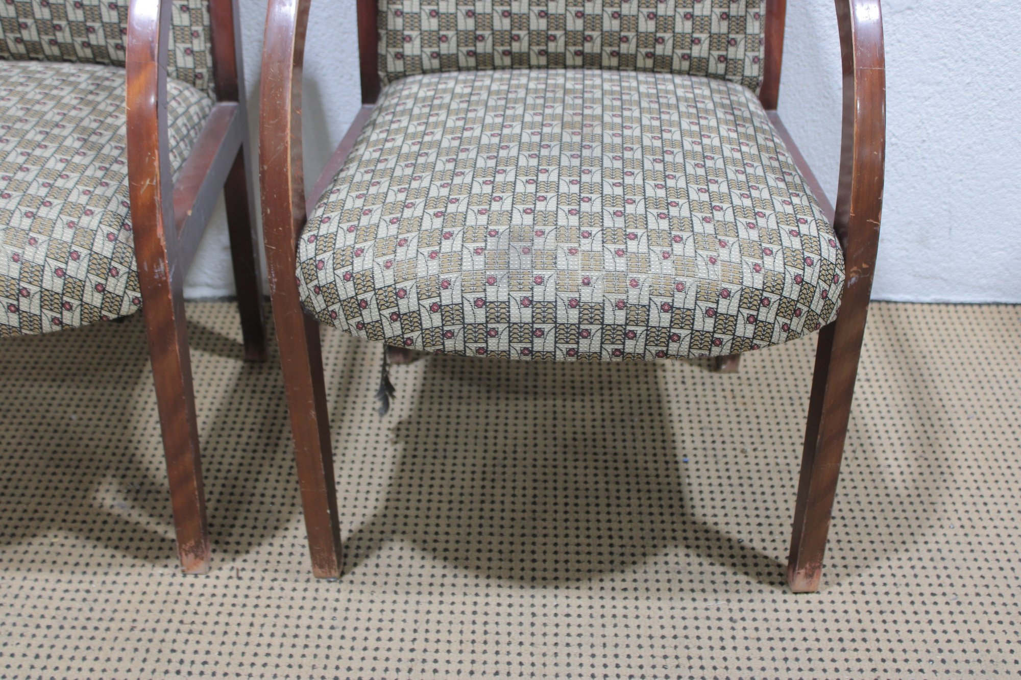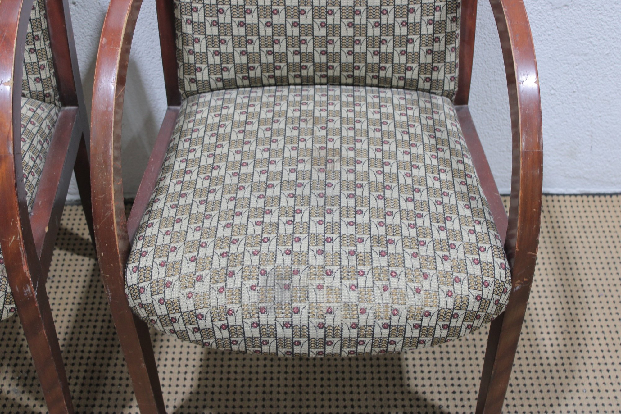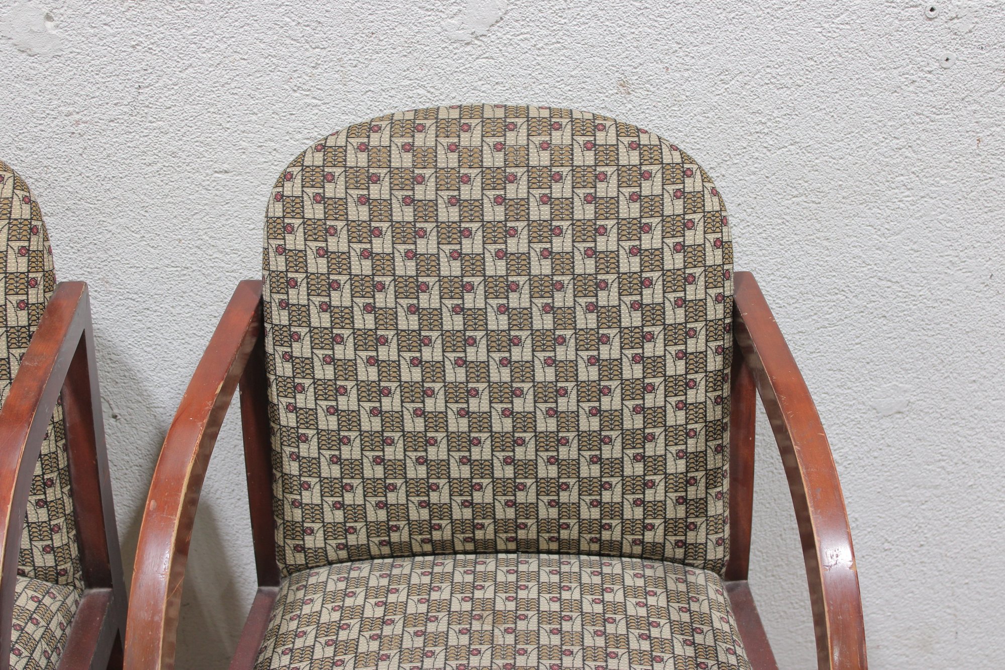 Comfortable and versatile pair of upholstered armchairs featuring gently curved wood arms and supportive padded backs. These chairs are ideal for office settings, reception areas, waiting rooms, or home use.