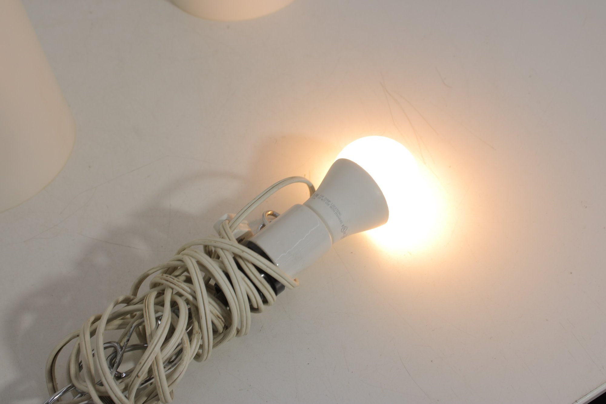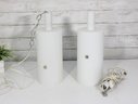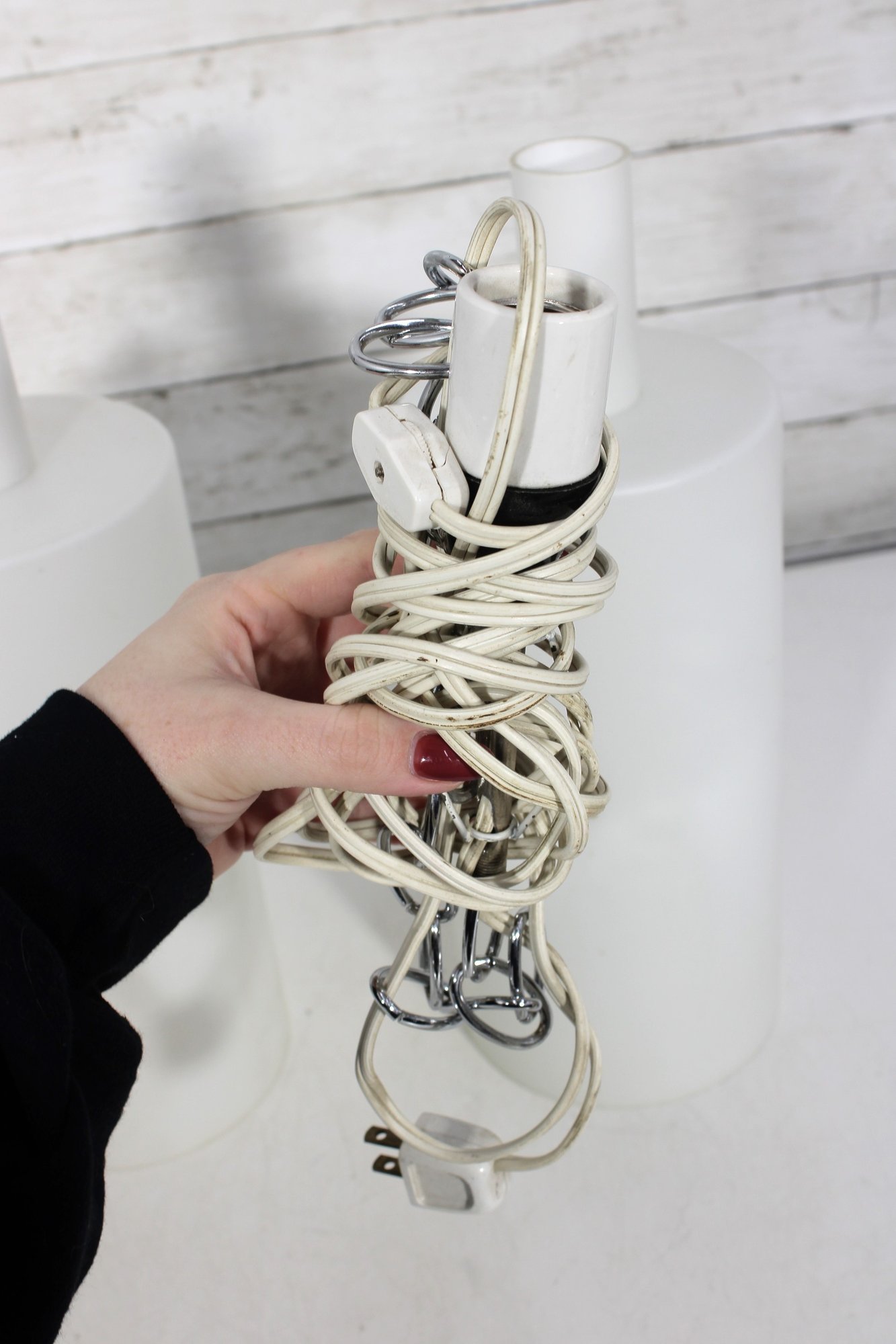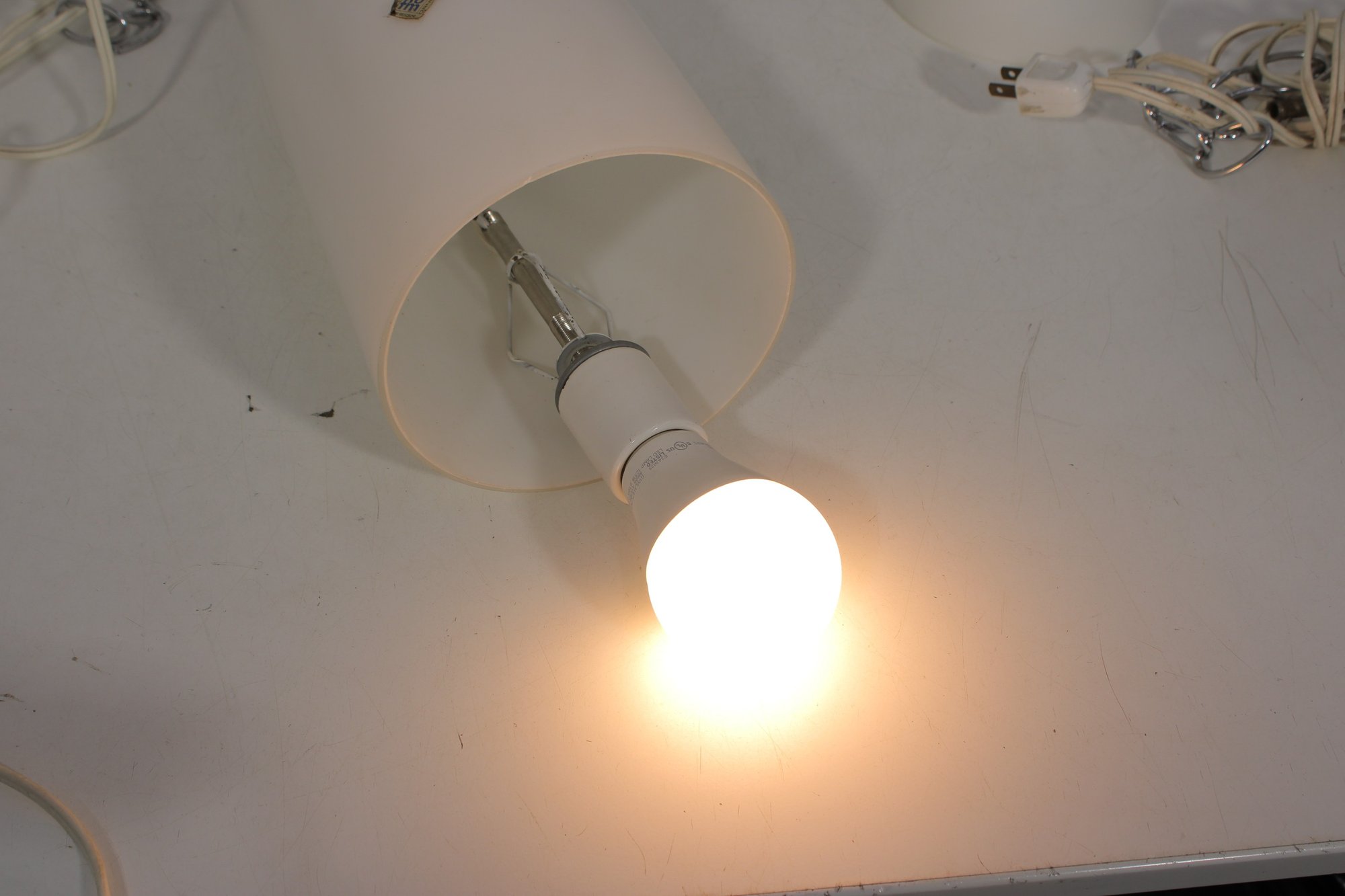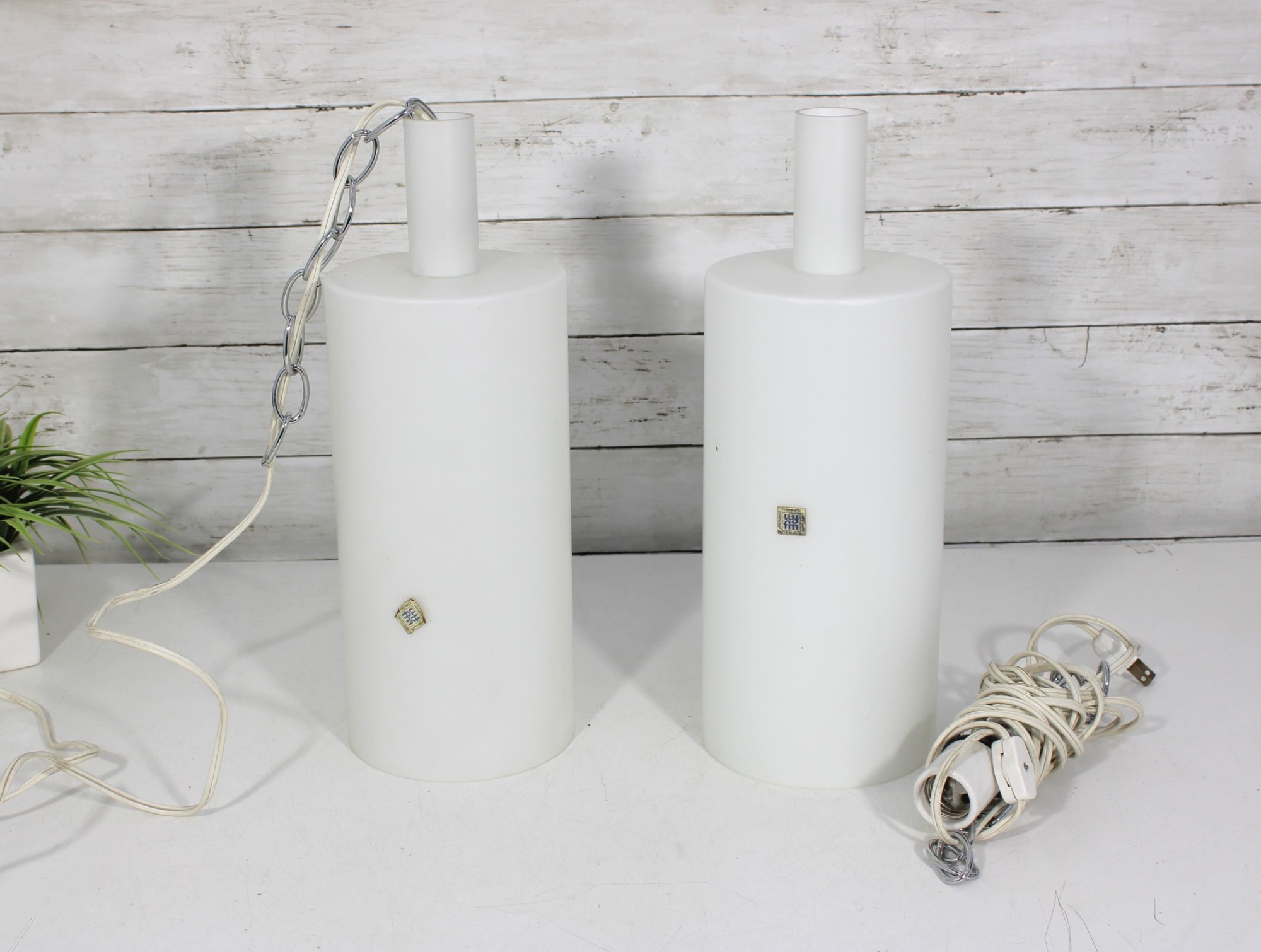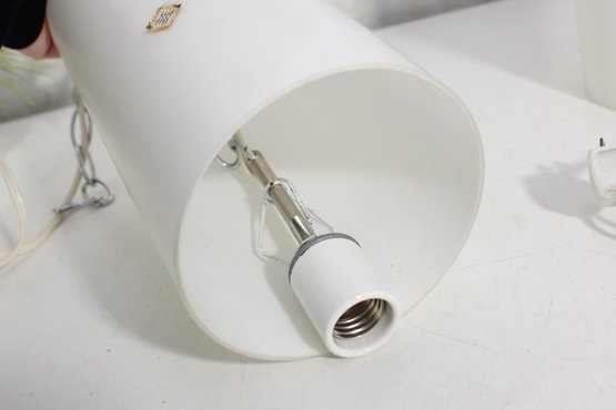 Each fixture houses a standard size bulb socket (bulbs used for testing purposes only). Both lights have been tested and are in working condition.