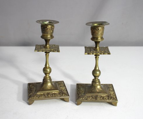 This elegant pair of vintage brass candlesticks adds a touch of timeless charm to any setting. Featuring intricate floral and scrollwork designs, these candlesticks are both decorative and functional.