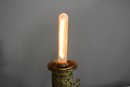 These lamps have been converted to electric and are in working condition, casting a warm, inviting glow.