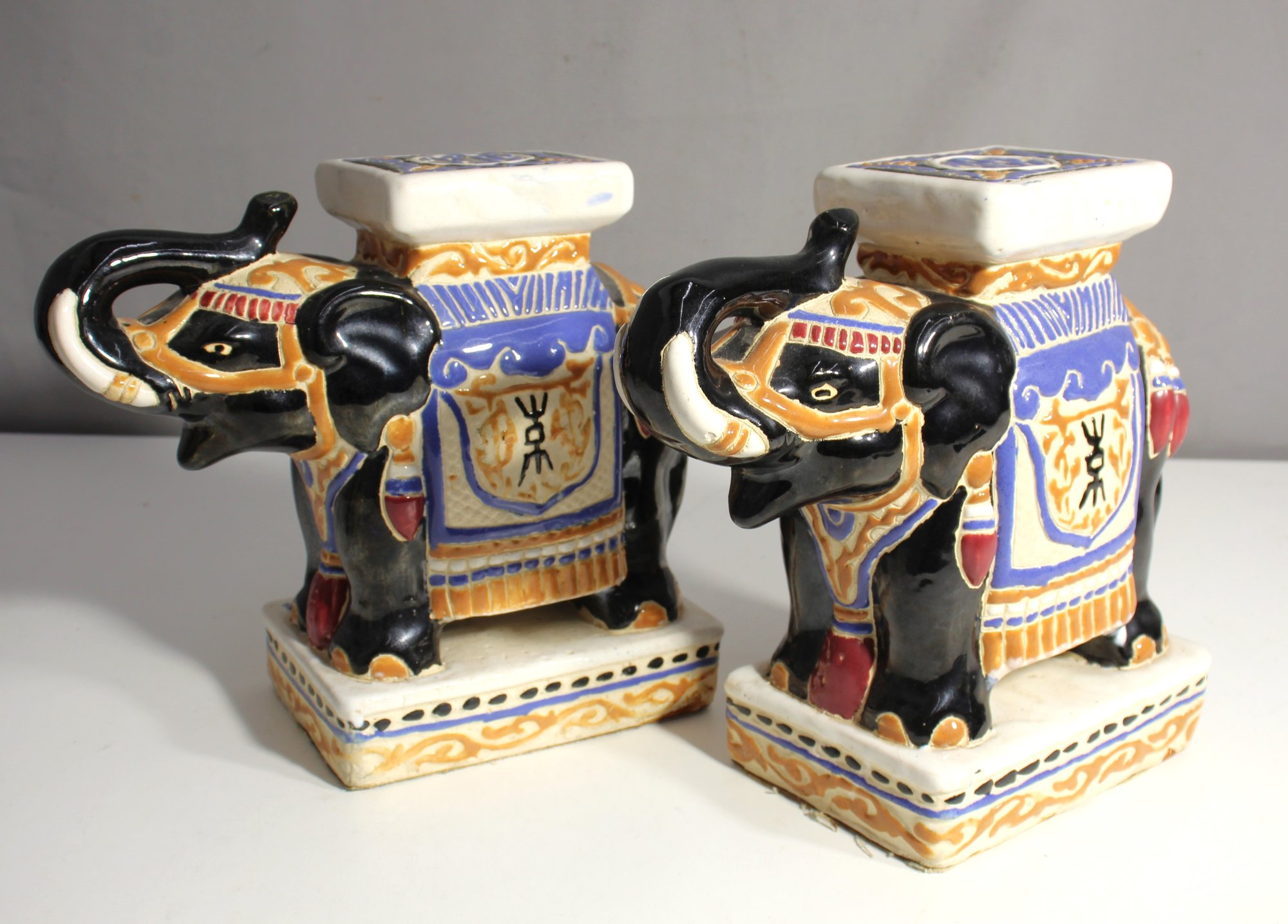 Pair Of Vintage Ceramic Elephant Plant Stands