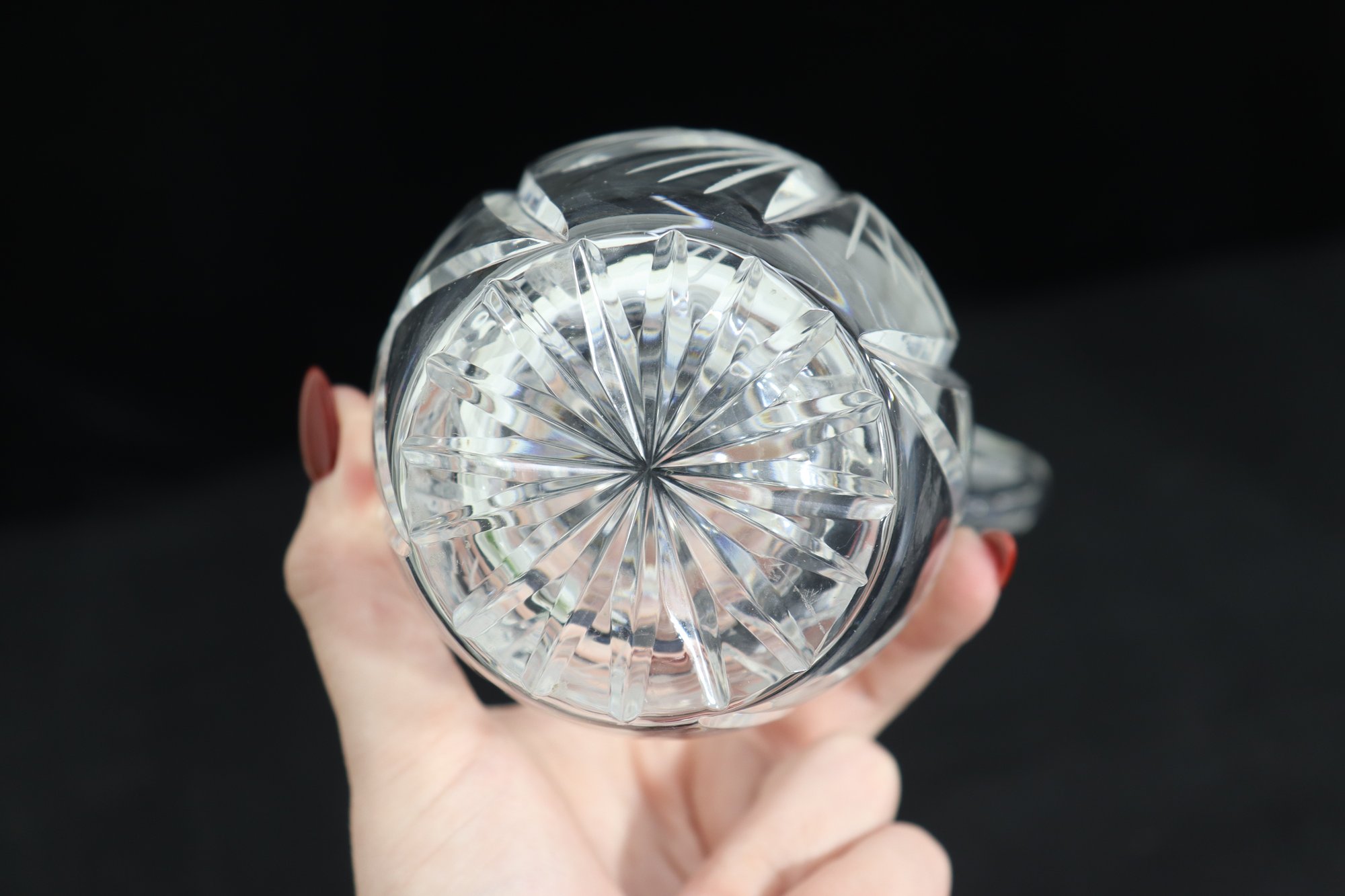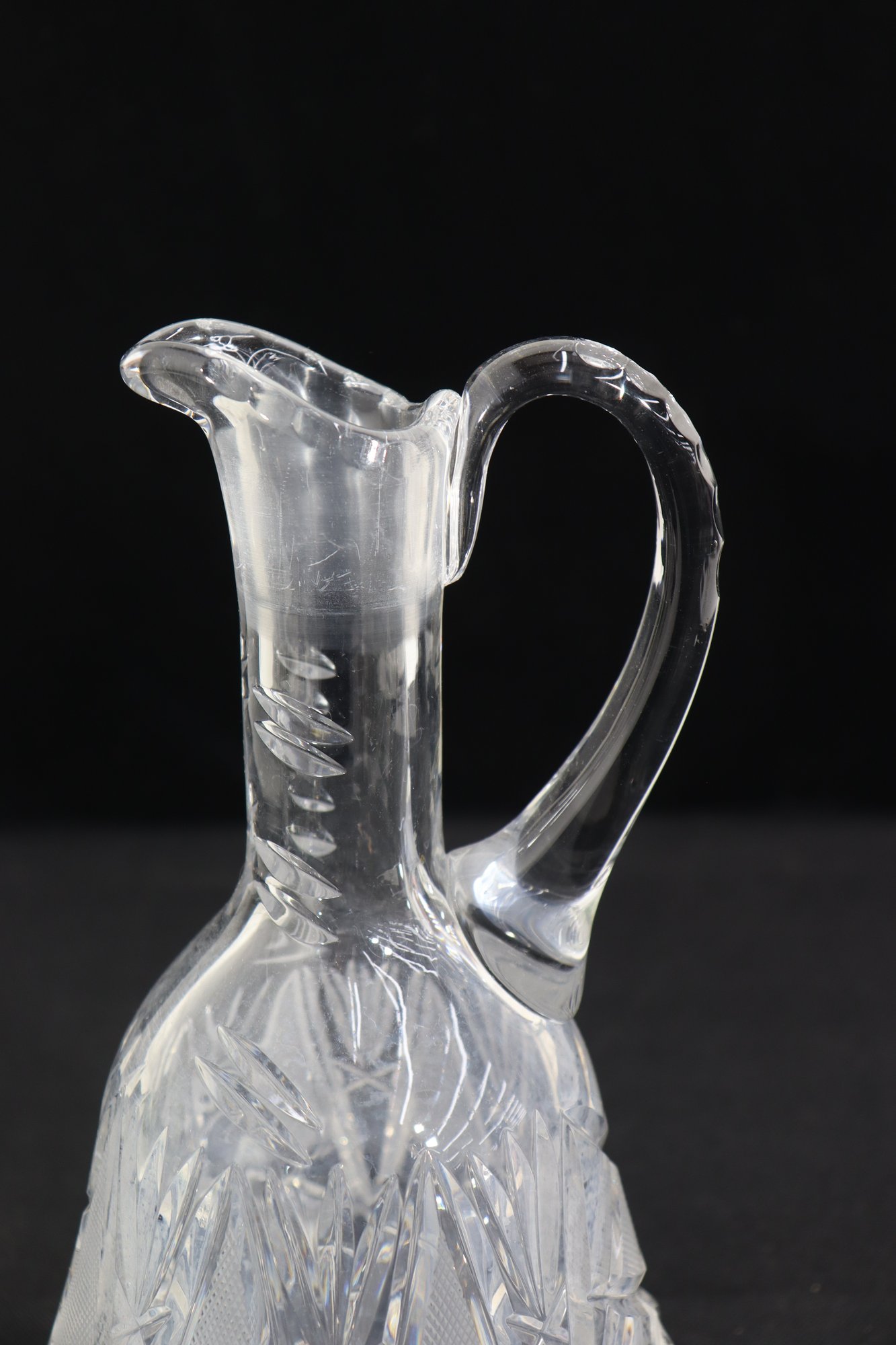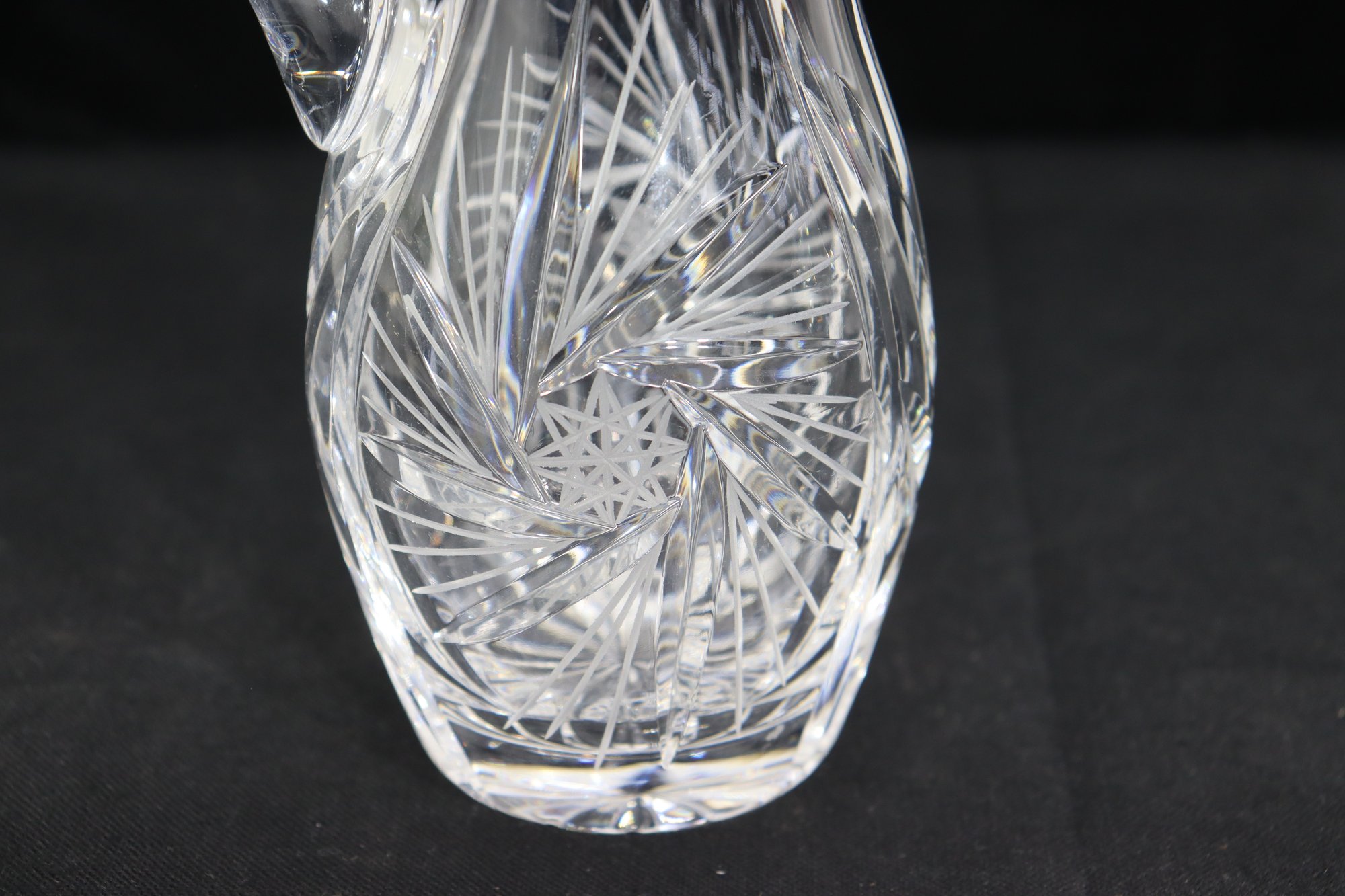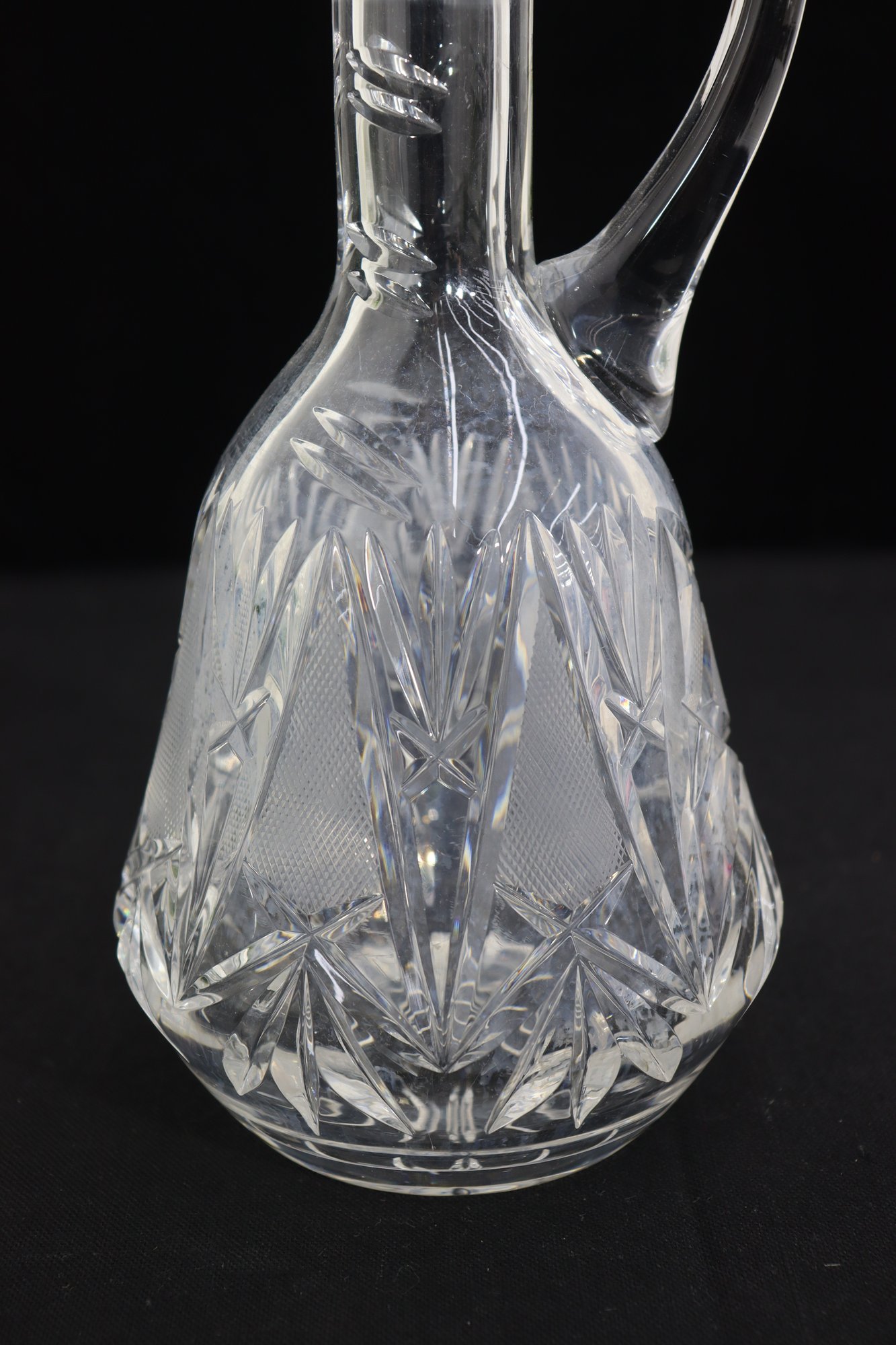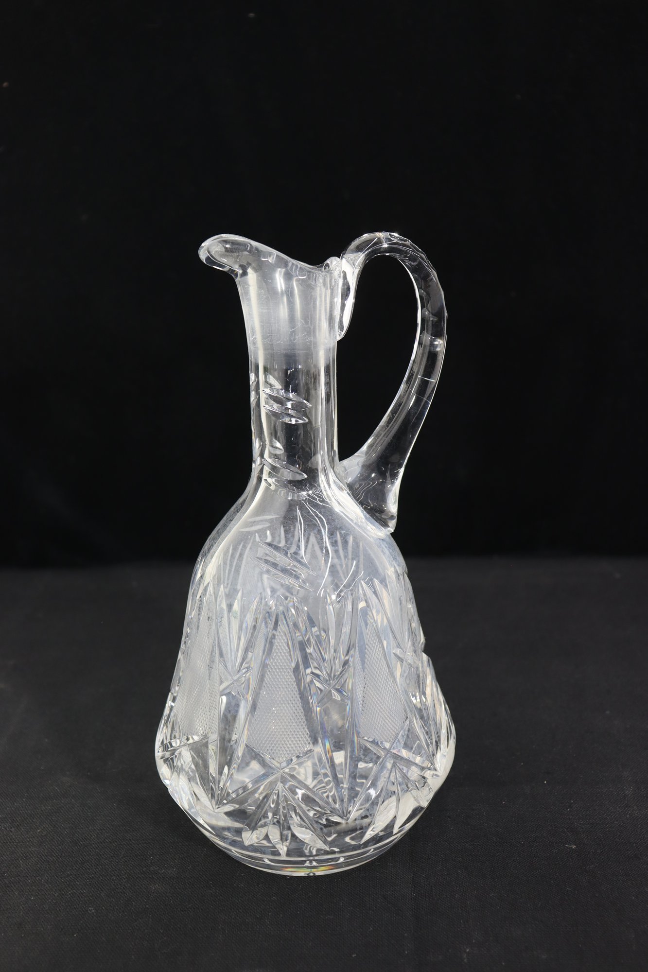 Beautifully crafted and full of sparkle, this pair of vintage cut crystal pitchers makes an elegant addition to any glassware collection or table display. Each piece features a unique etched pattern with intricate floral and starburst cuts, showcasing the brilliance and craftsmanship of traditional crystal work.