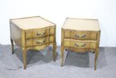 This pair of vintage French Provincial nightstands by Weiman Heirloom Tables is a classic blend of elegance and functionality. Featuring curved serpentine fronts, cabriole legs, and ornate drawer pulls, these pieces are ideal for adding vintage charm to a bedroom or living space.