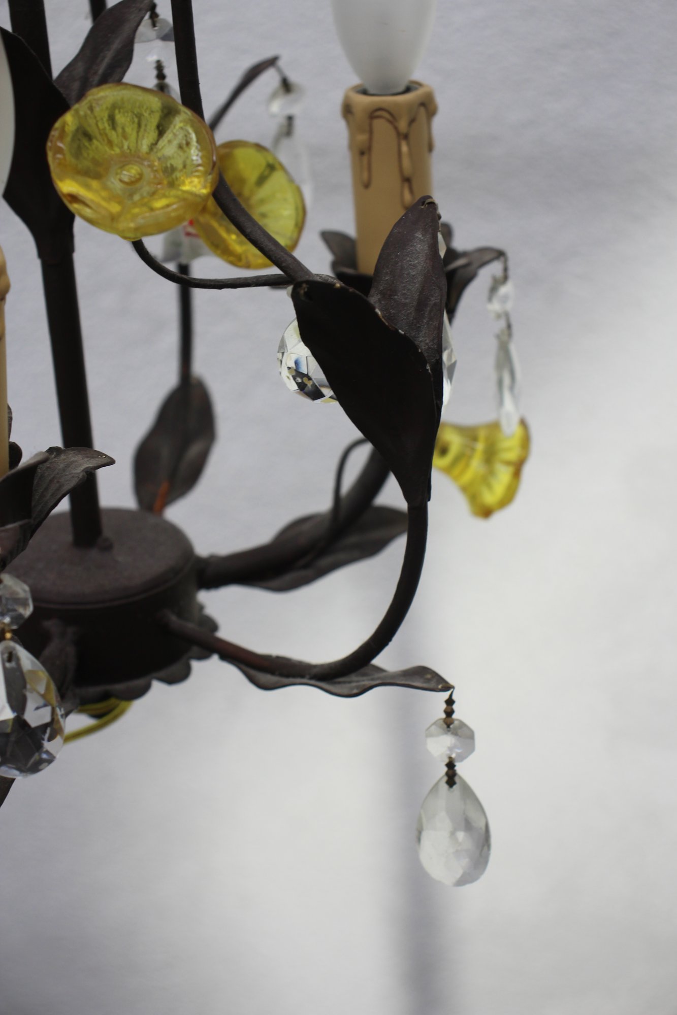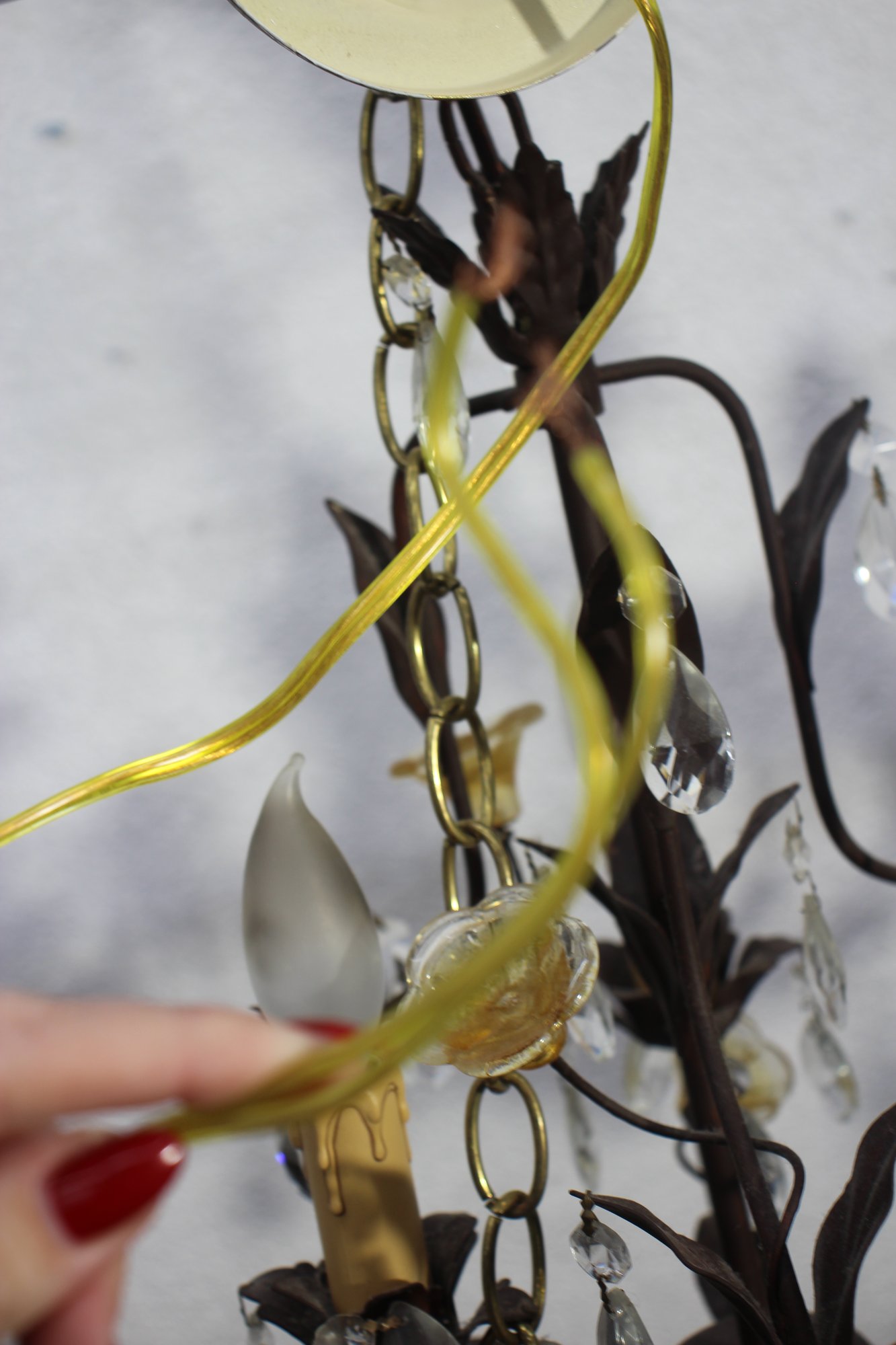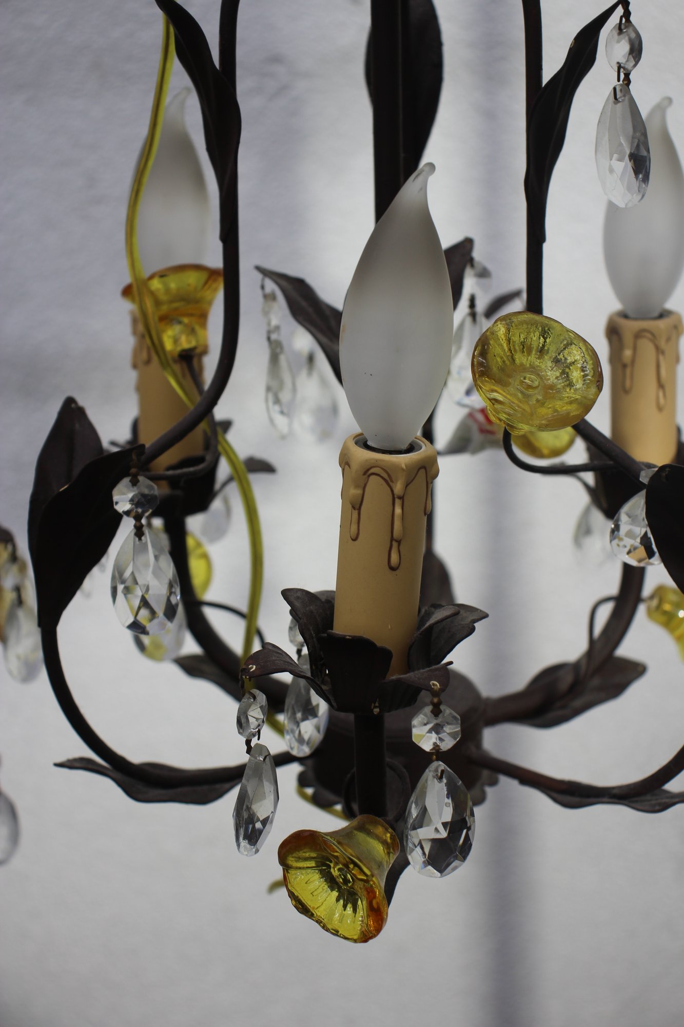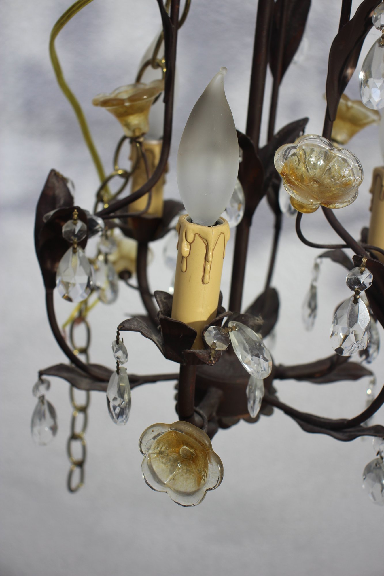 Add a touch of elegance to your home with this pair of vintage French-style chandelier sconces. Featuring intricate metalwork, sparkling crystal drops, and delicate floral accents, these fixtures exude timeless charm.