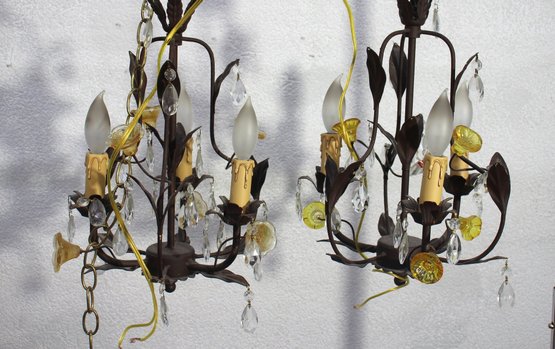 A Pair of Vintage French-Style Crystal Chandelier Sconces.