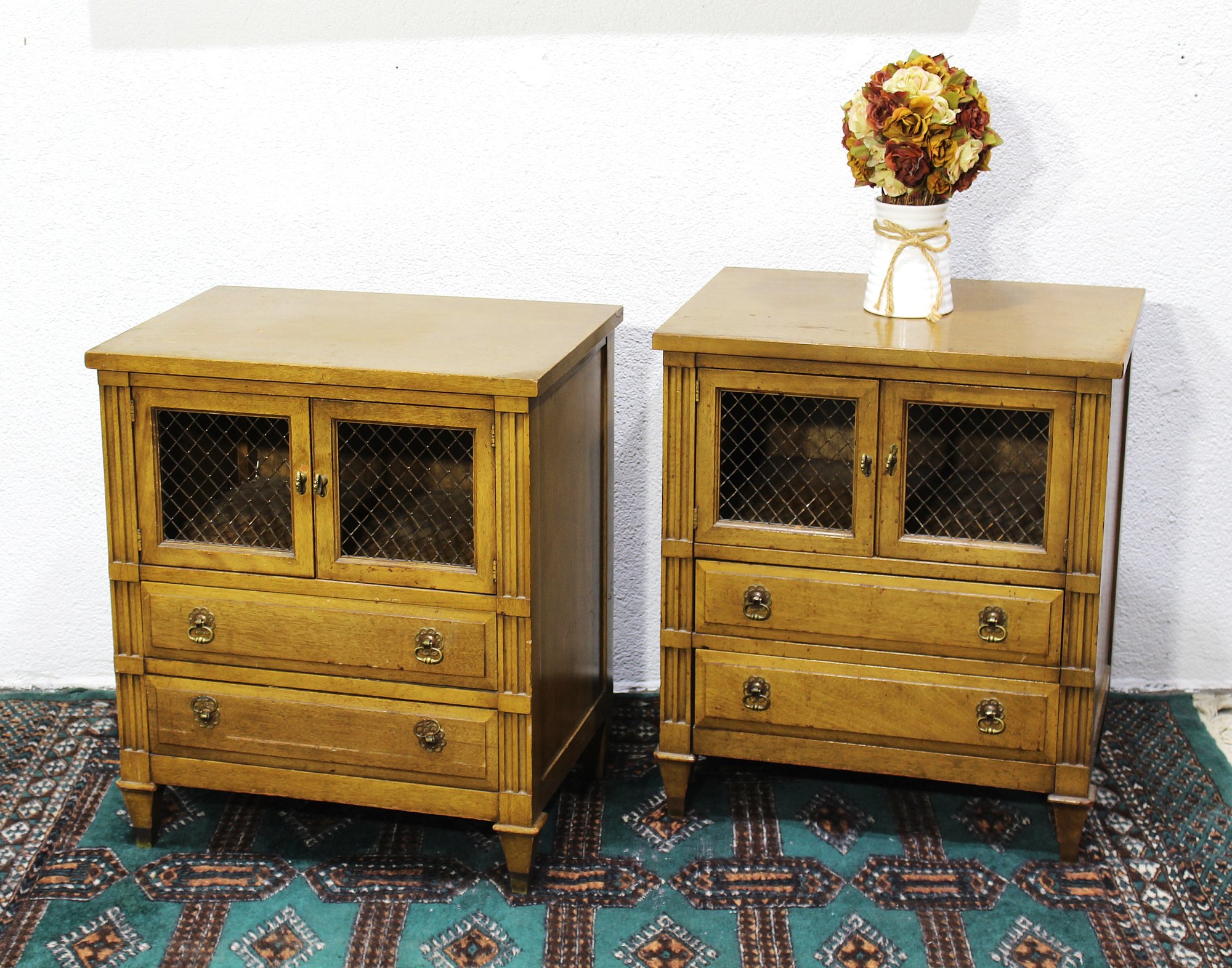 This charming pair of vintage mahogany cabinets is a perfect blend of style and function, ideal for any living space.