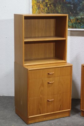 Upgrade your home or office with this pair of vintage mid-century modern bookshelf cabinets, offering ample storage and display space in a sleek, minimalist design. With their compact size and versatile functionality, these pieces are perfect for books, decor, or office essentials.