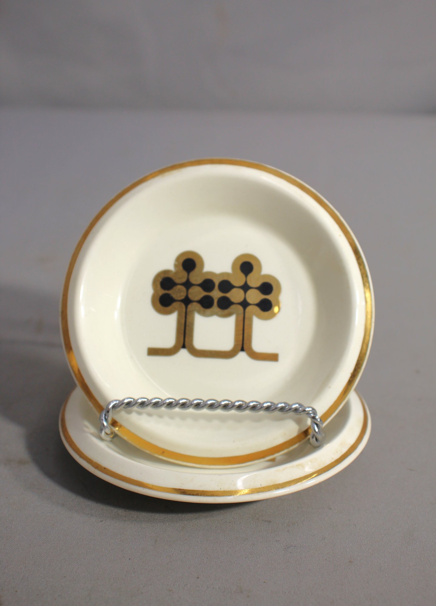 These ashtrays feature a classic design with gold accents and the iconic Royal Garden Hotel emblem. The intricate detailing and high-quality ceramic make these ashtrays a must-have for collectors of hotel memorabilia