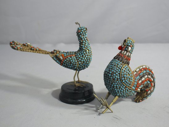 Pair Of Vintage TIBETAN Brass Beaded Birds-made In India