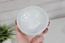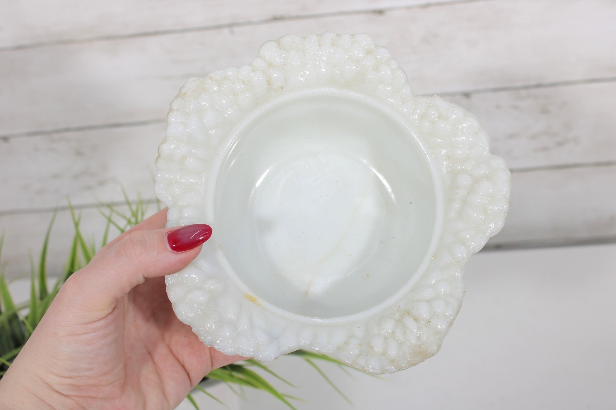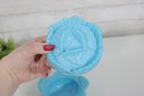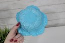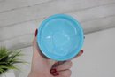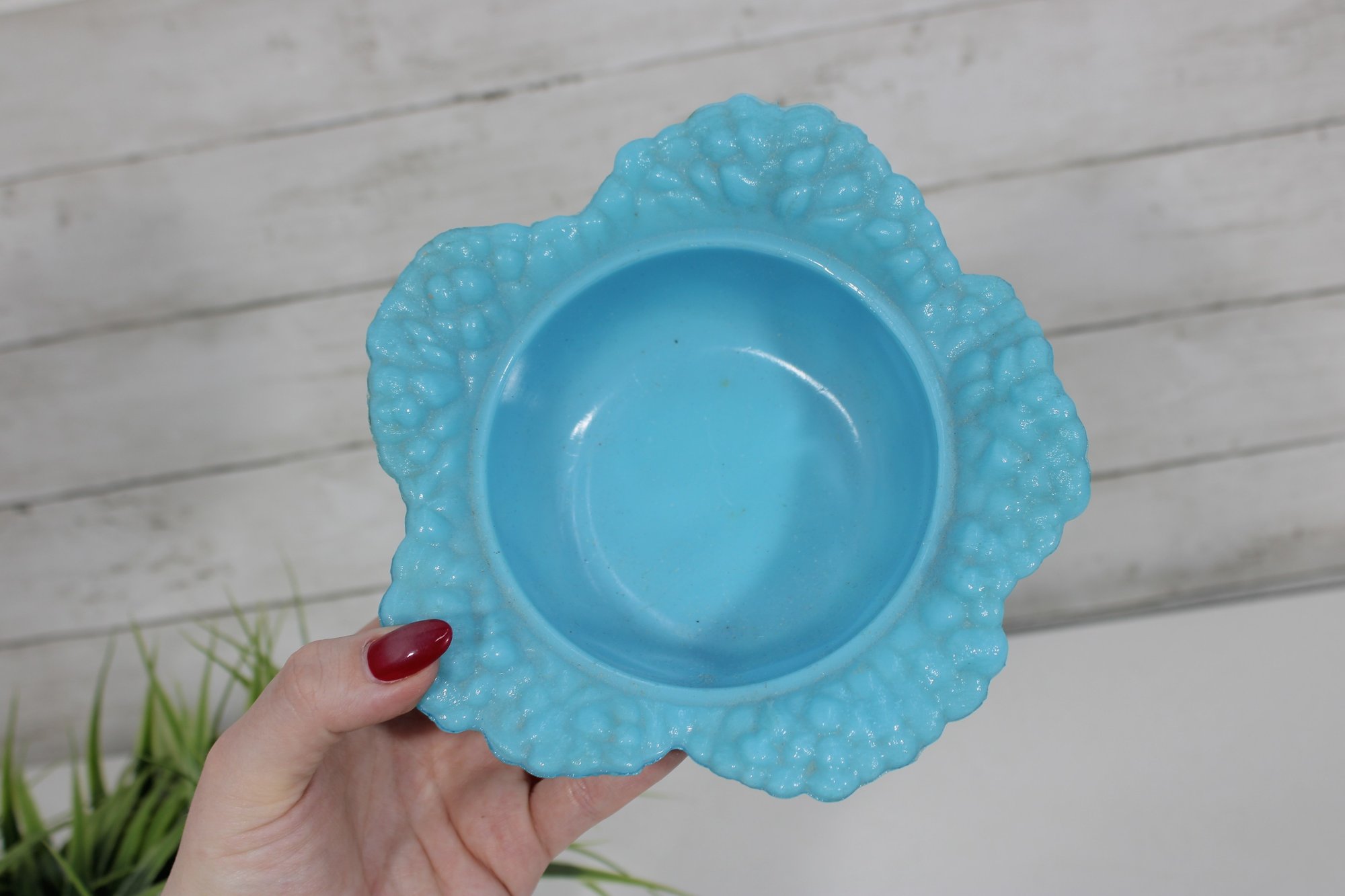 The turquoise bowl offers a bold pop of color, while the milk glass piece provides a soft, elegant contrast—making them a delightful complementary pair.
