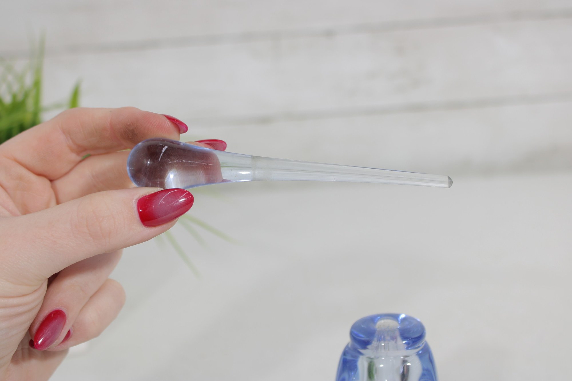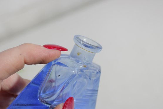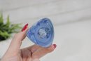 Both pieces display a beautiful light blue coloration and catch the light nicely, making them ideal for vanity display or as decorative accents. Their differing forms complement each other well, creating a visually appealing set.