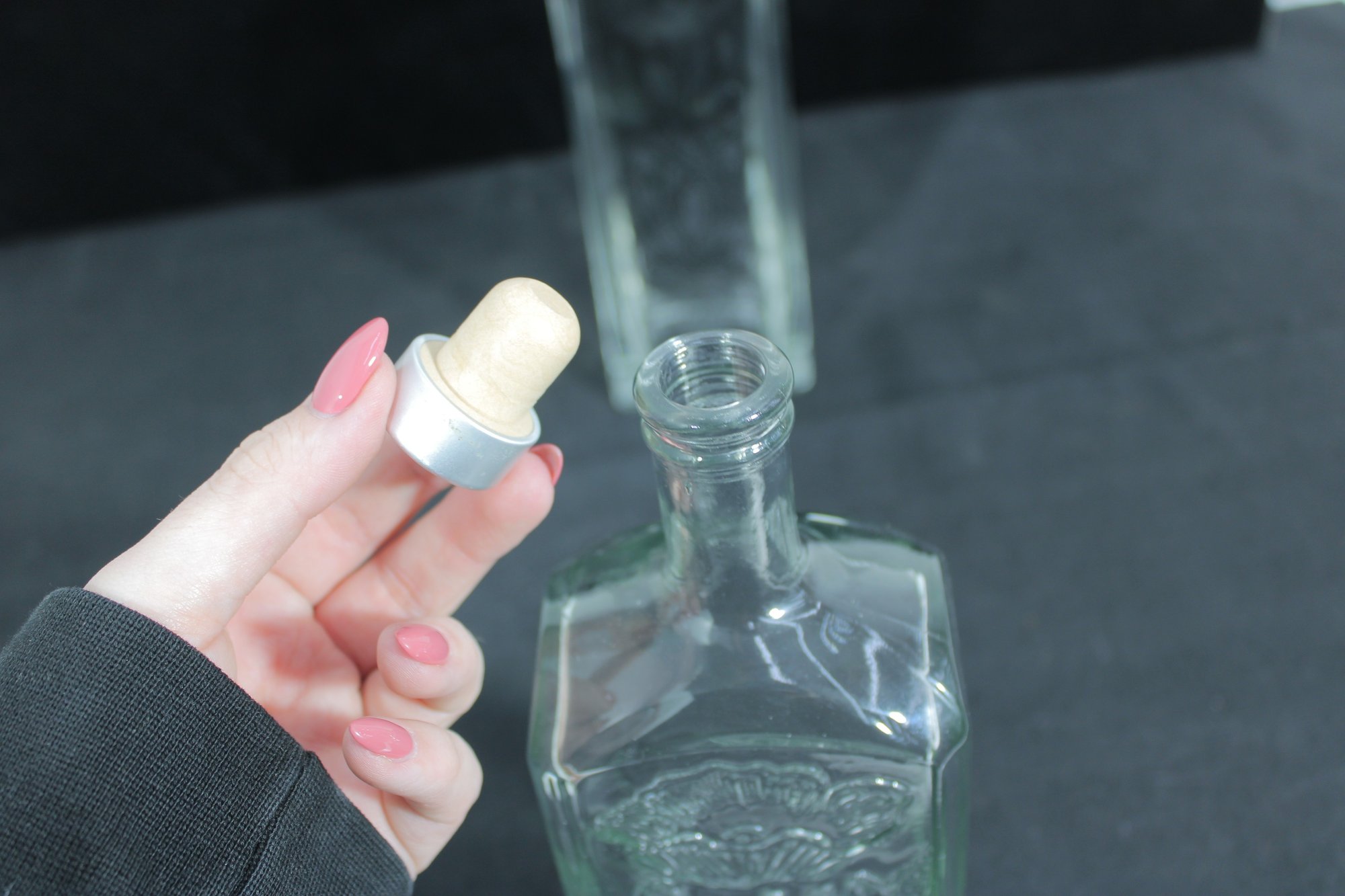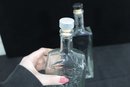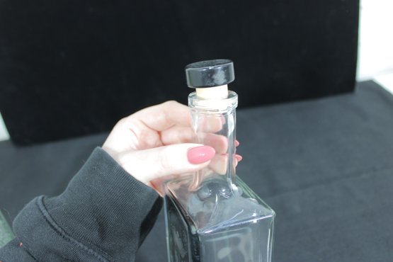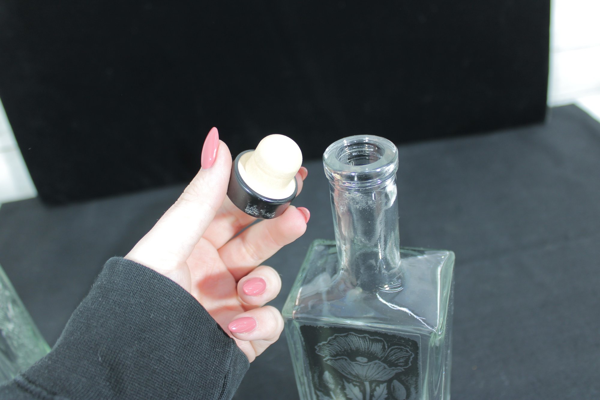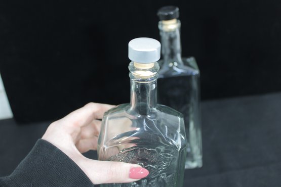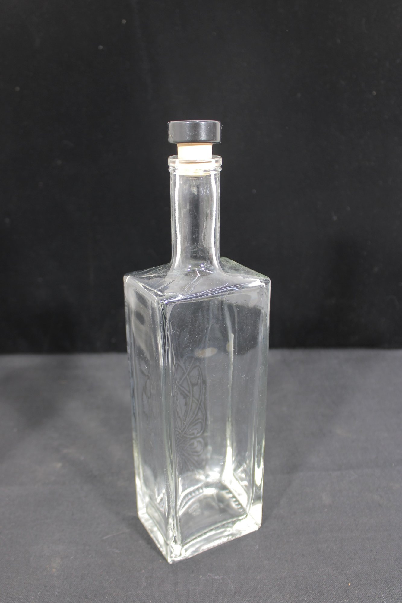 Pair Vintage Glass Liquor Bottles / Decanters Embossed Floral 10.5" & 12"
