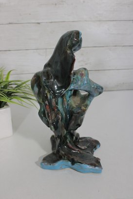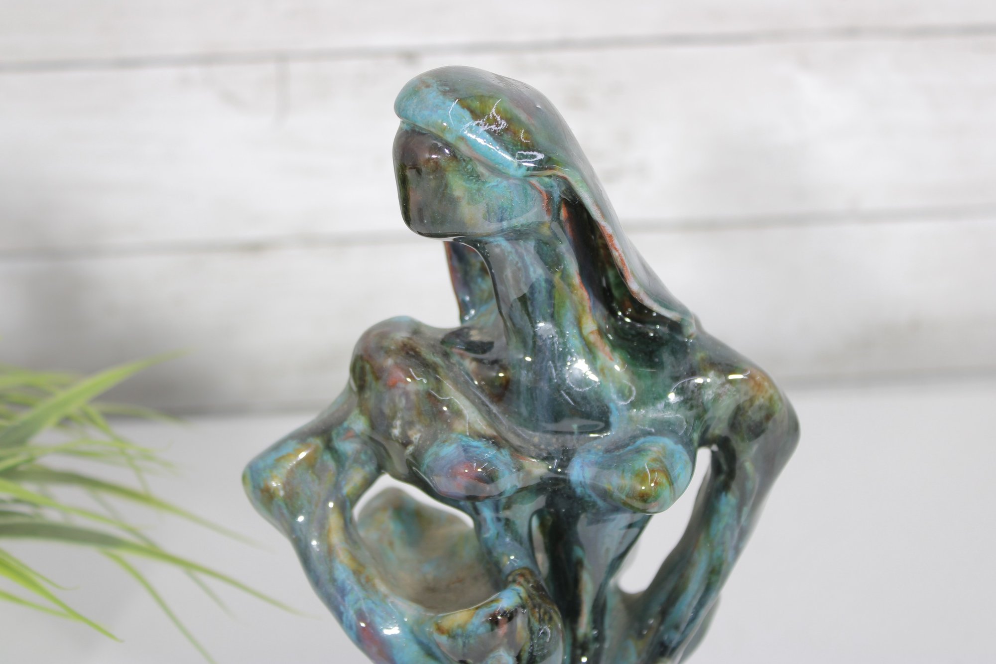 original ceramic sculpture by Alberto Dos Reis, dated 1989. This expressive modernist piece features an abstract figural form, with fluid, organic lines that suggest intertwined human forms or a stylized female figure.