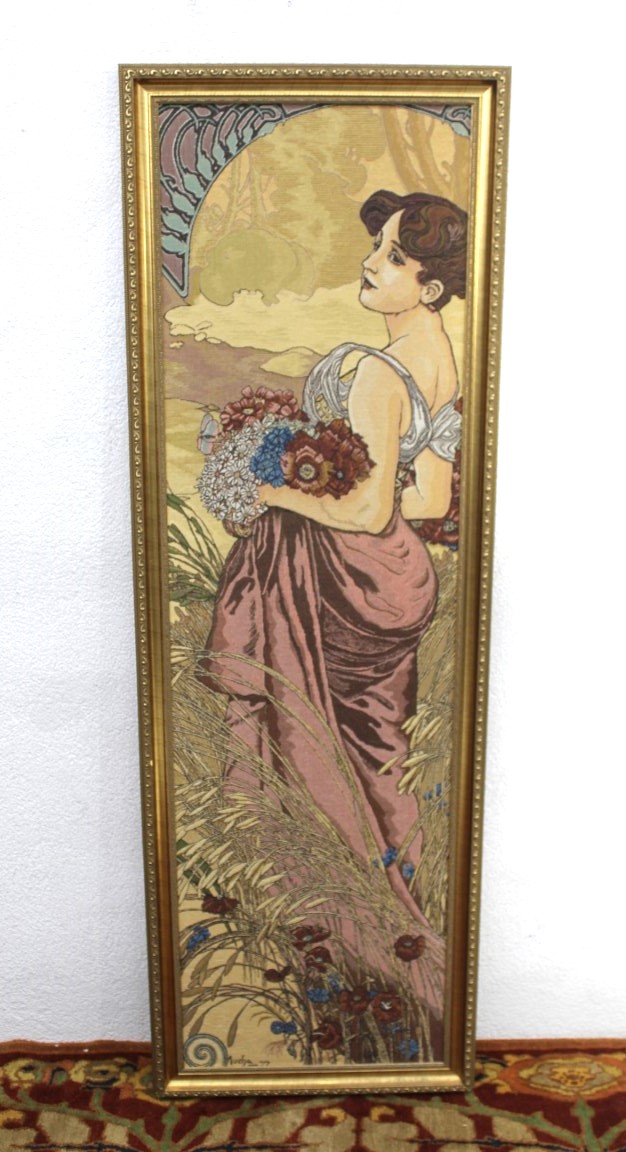 Reproduction of Mucha’s iconic “Summer” from his seasonal series, showcasing a woman adorned with flowers, symbolizing warmth and abundance.