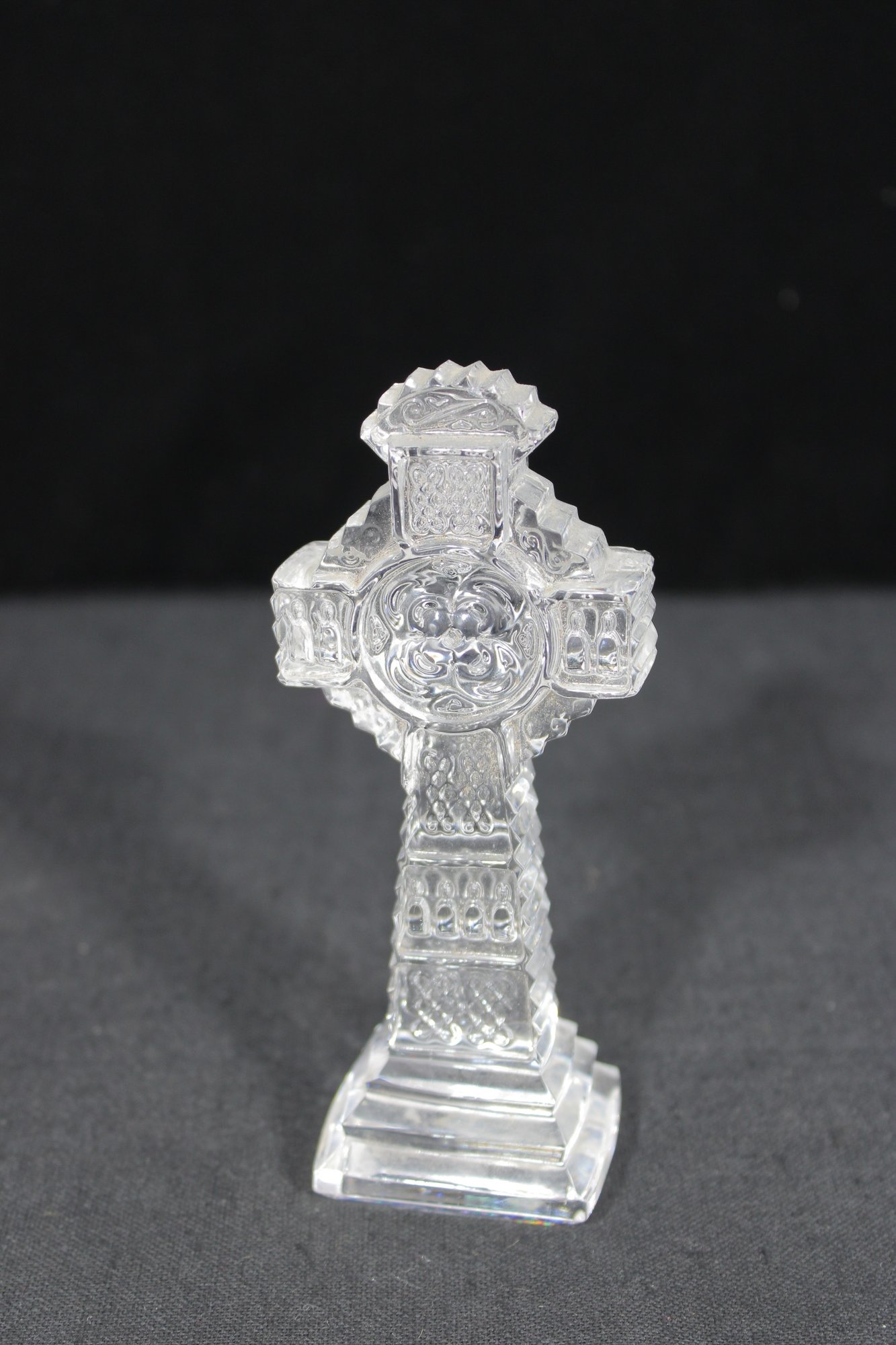 Galway Irish Crystal Celtic cross, expertly crafted with intricate detailing and classic Irish design. This elegant piece features traditional Celtic knotwork and a radiant cut pattern, showcasing the fine quality and craftsmanship Galway Crystal is known for.