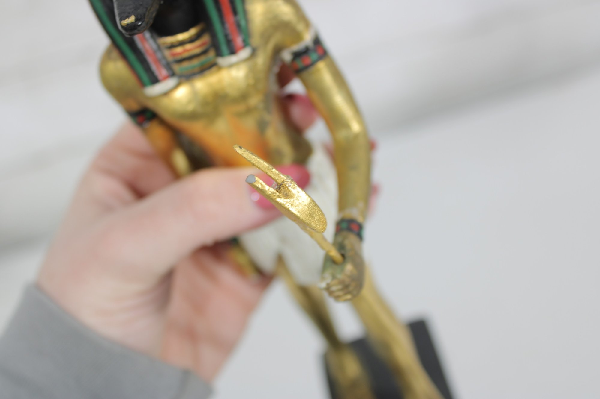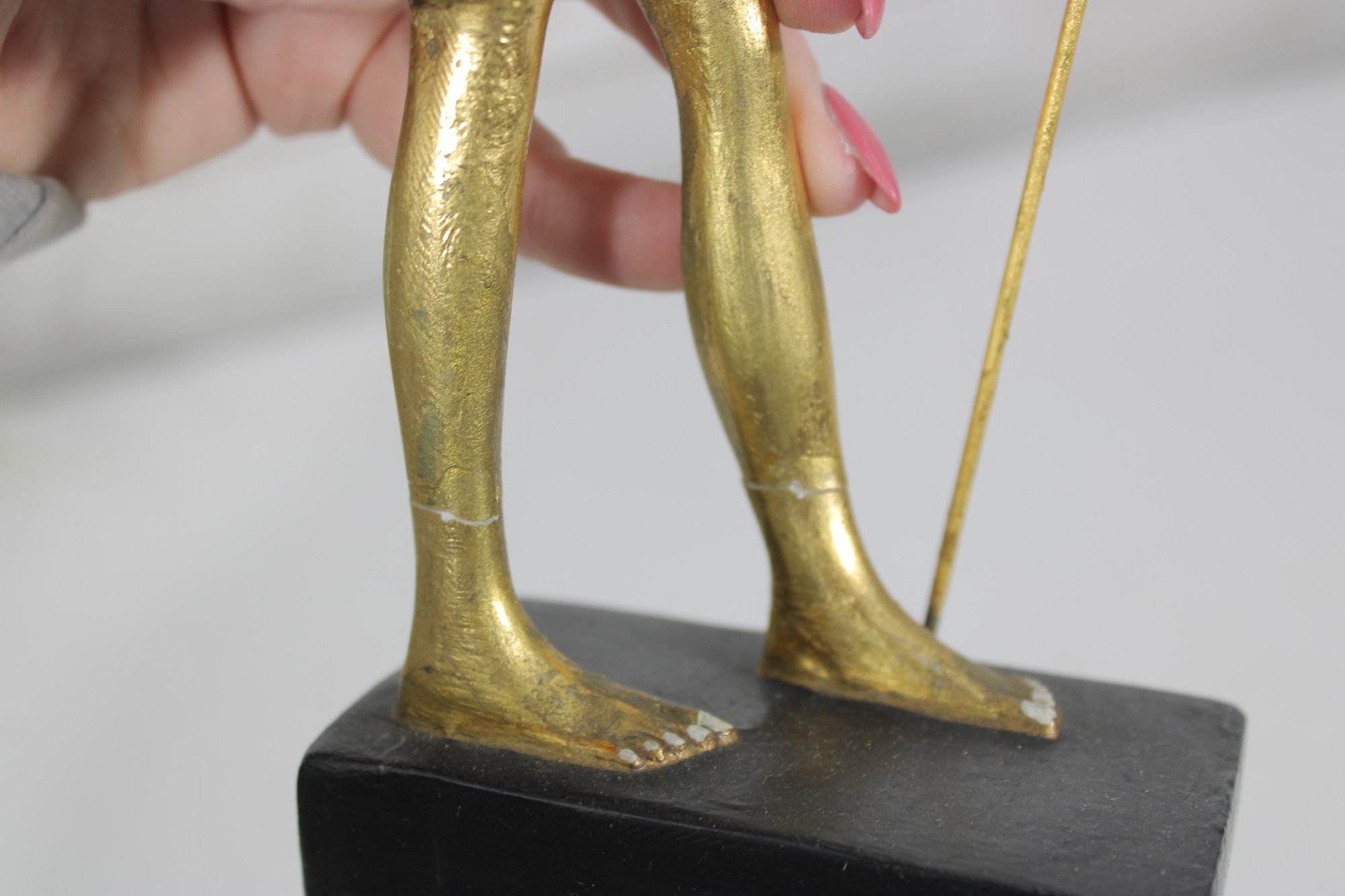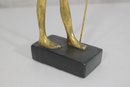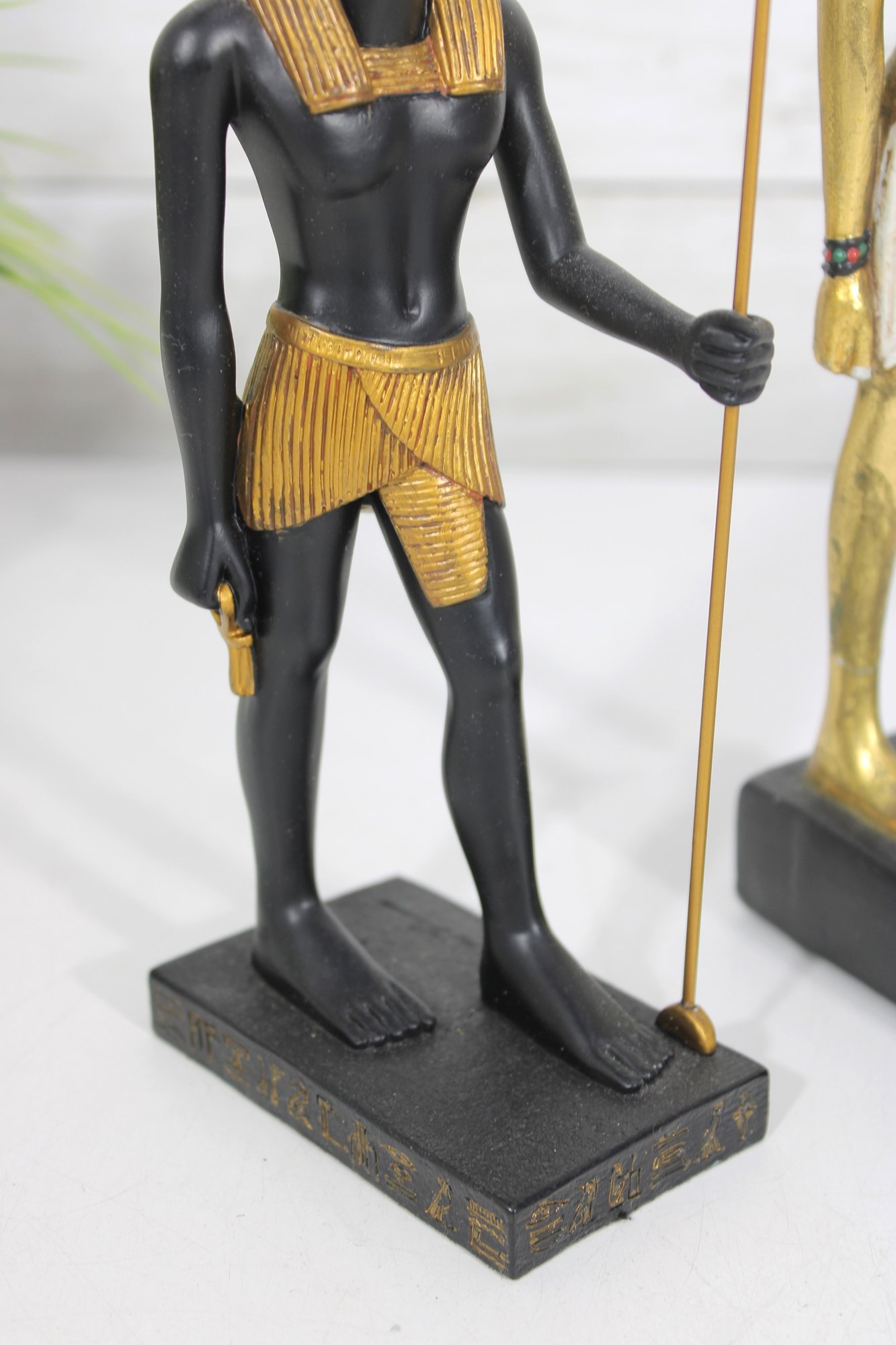 One figure is finished in a bold black and gold color scheme, while the other features a brighter gold-tone finish with painted accents—creating a visually appealing contrast when displayed together.