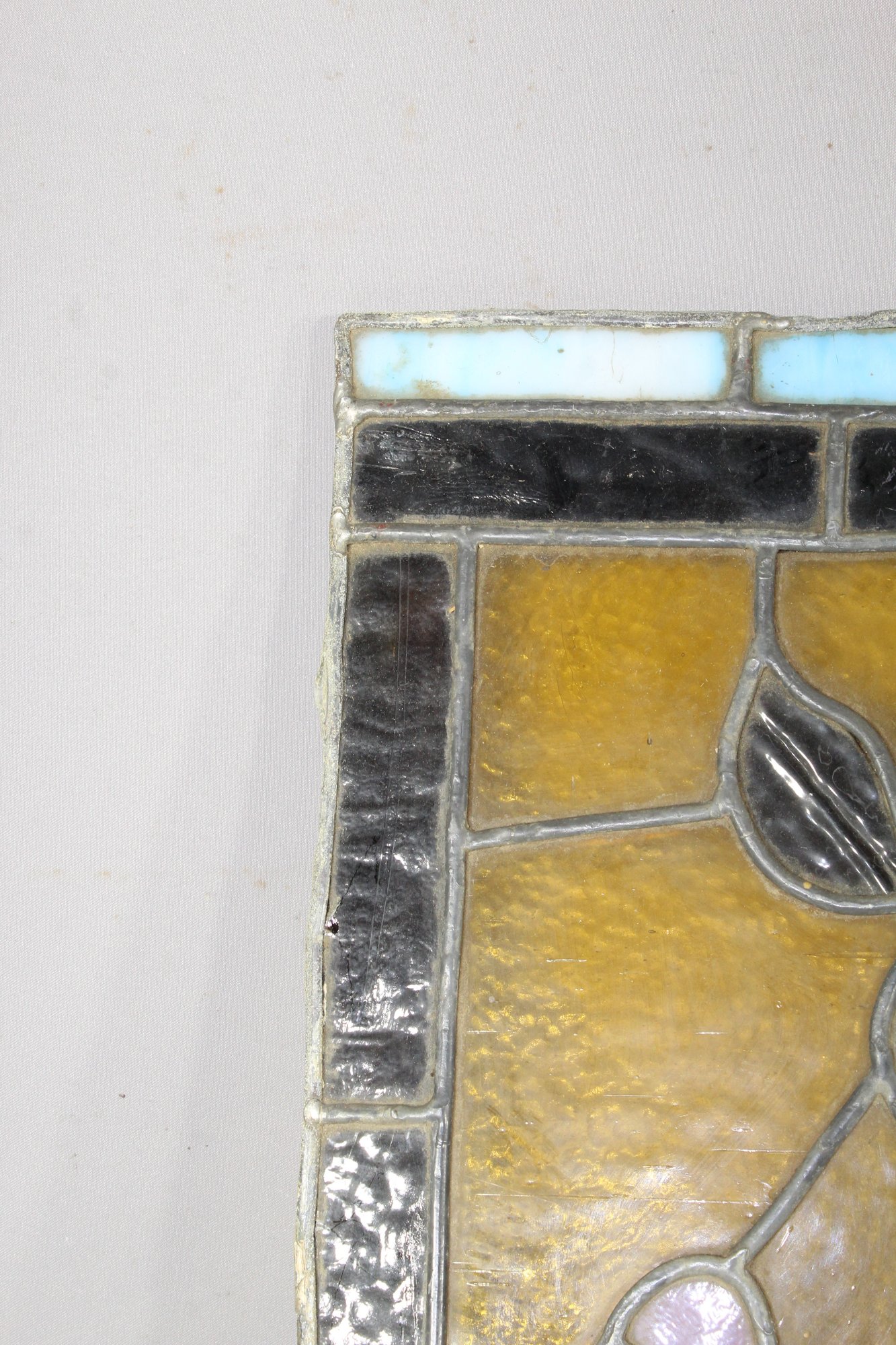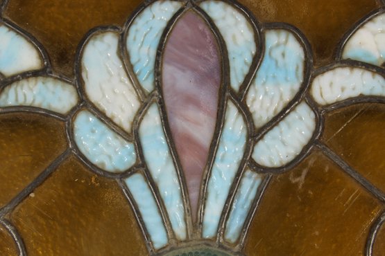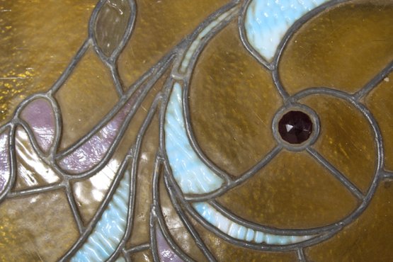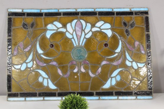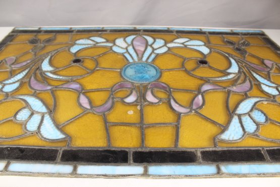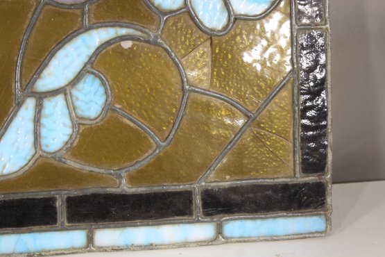 This panel is in excellent antique condition with vibrant colors and no visible damage to the glass. Minor wear is consistent with age and adds to its character. Please review the detailed photos for close-up views of the craftsmanship.