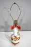 This exquisite 22-inch antique Murano-style art glass lamp is a true work of art, featuring delicate hand-applied glass details, a ruffled rim, and an ornate sculptural base. The white opaline glass body is adorned with amber-toned vines, leaves, and shells, while the ruffled rim showcases a stunning pink-to-clear gradient with gold accents.