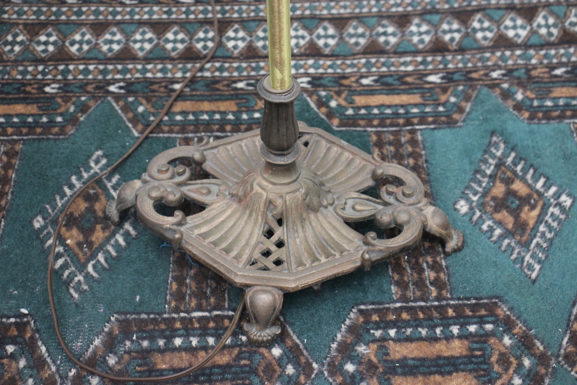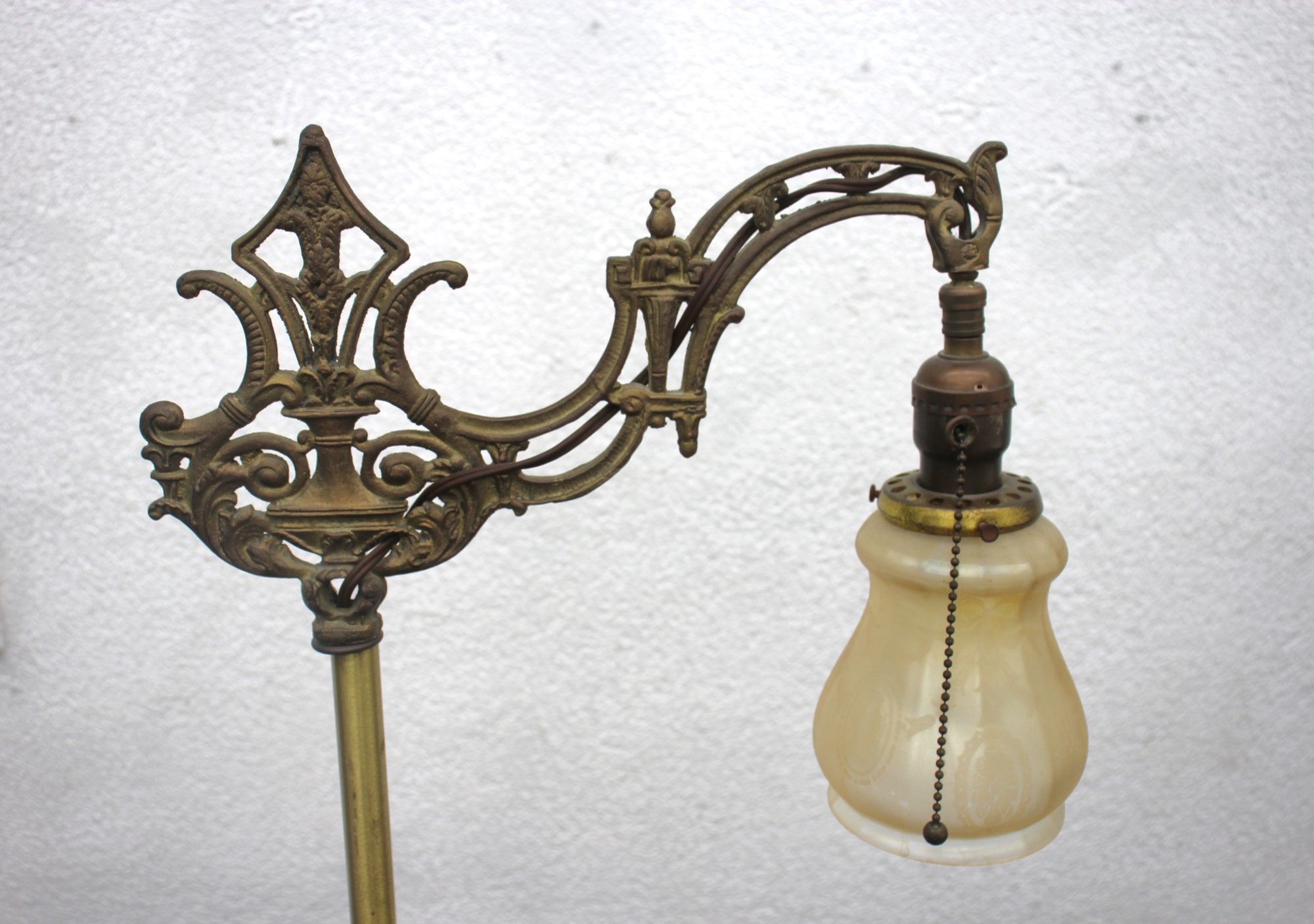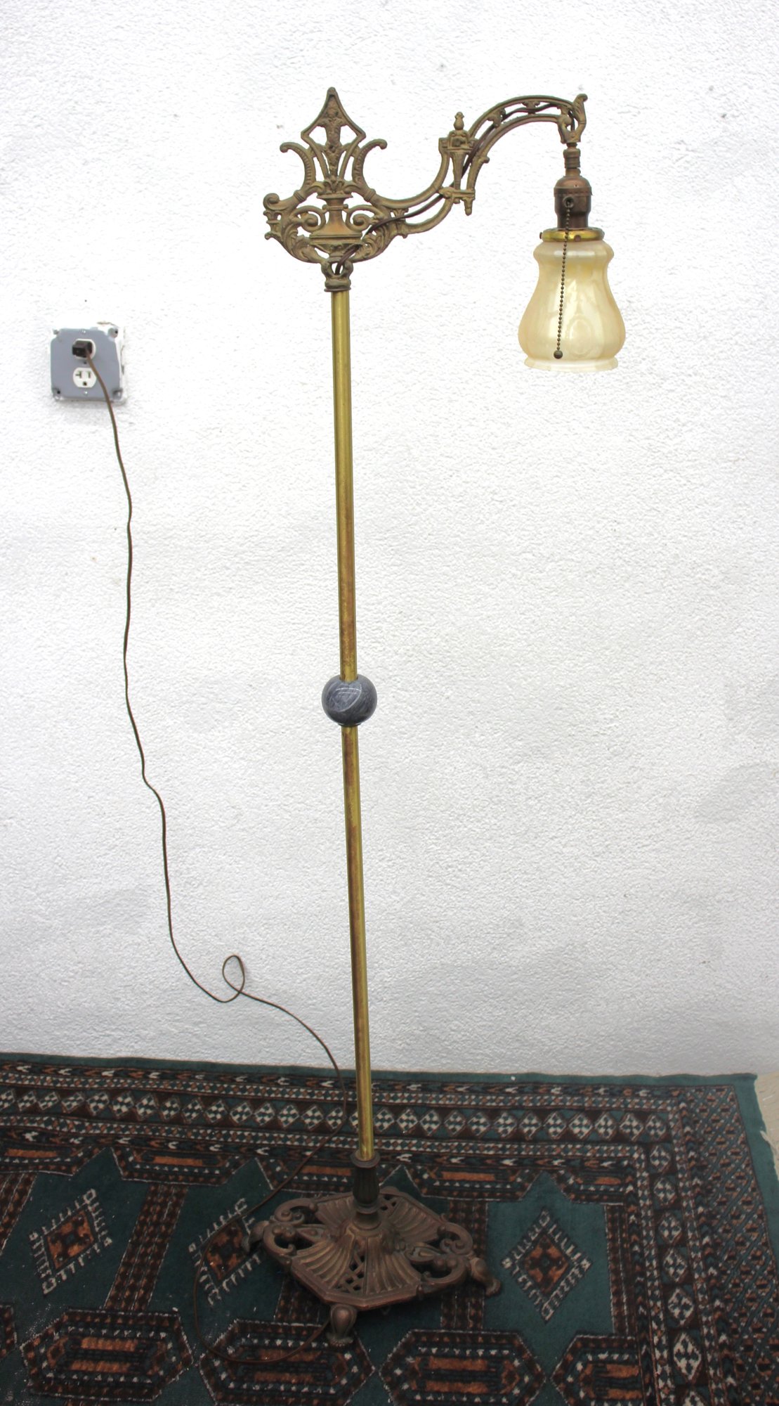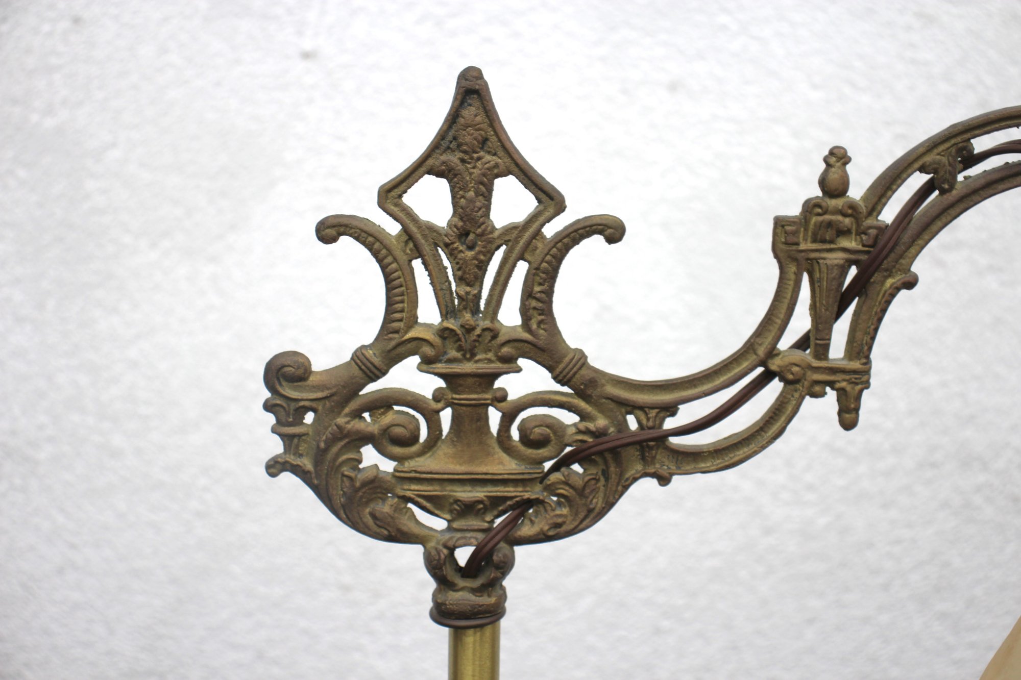 Material: Cast iron base, brass pole, and intricate bridge arm