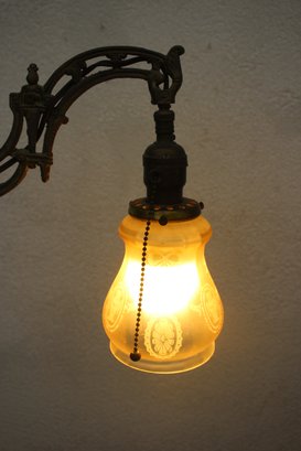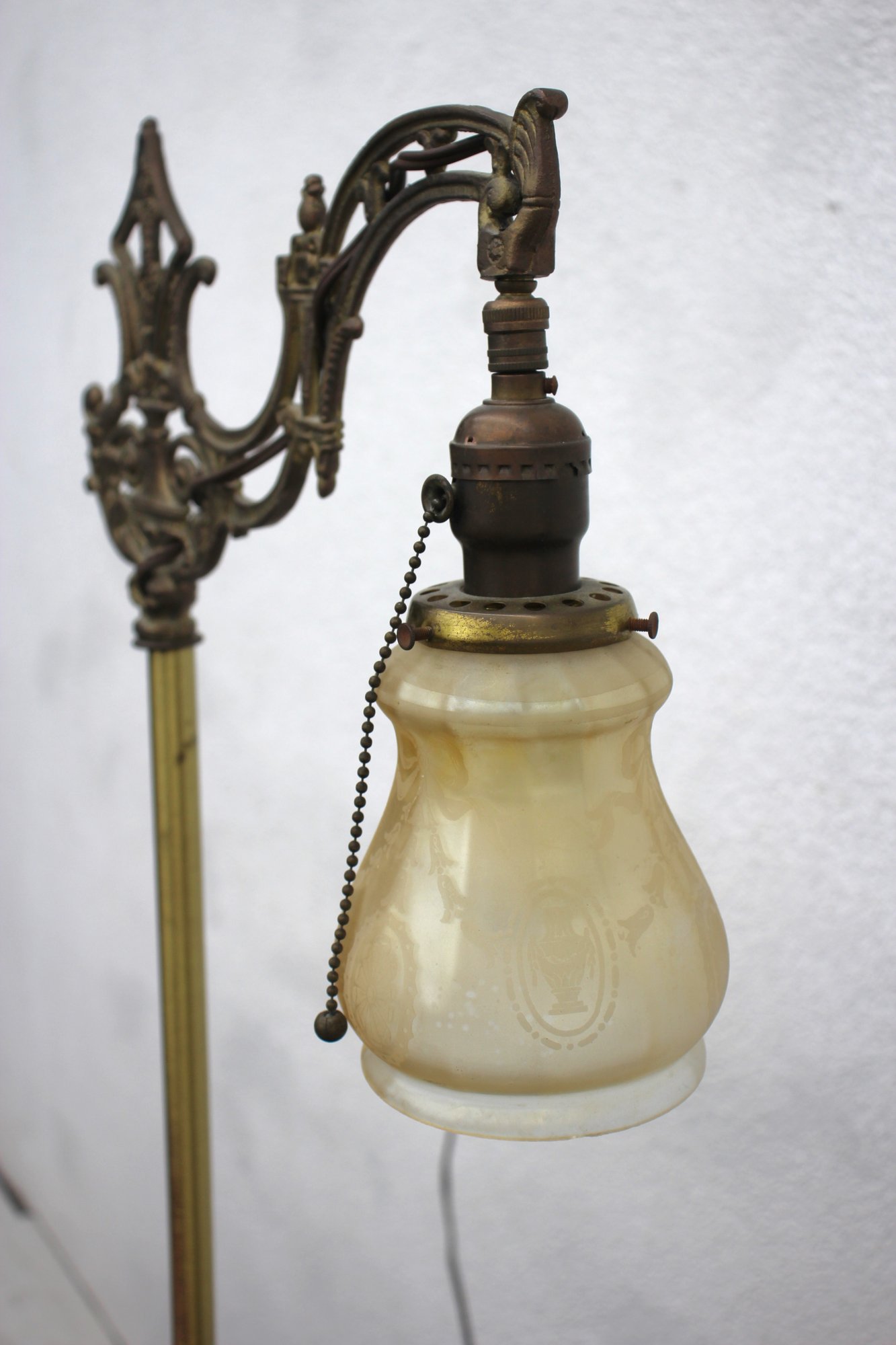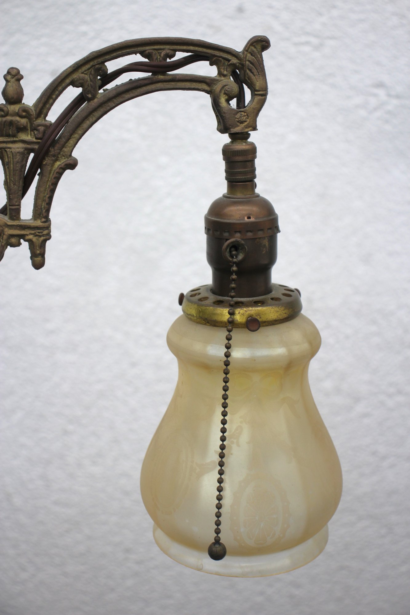 Shade: Original frosted glass shade with embossed floral patterns